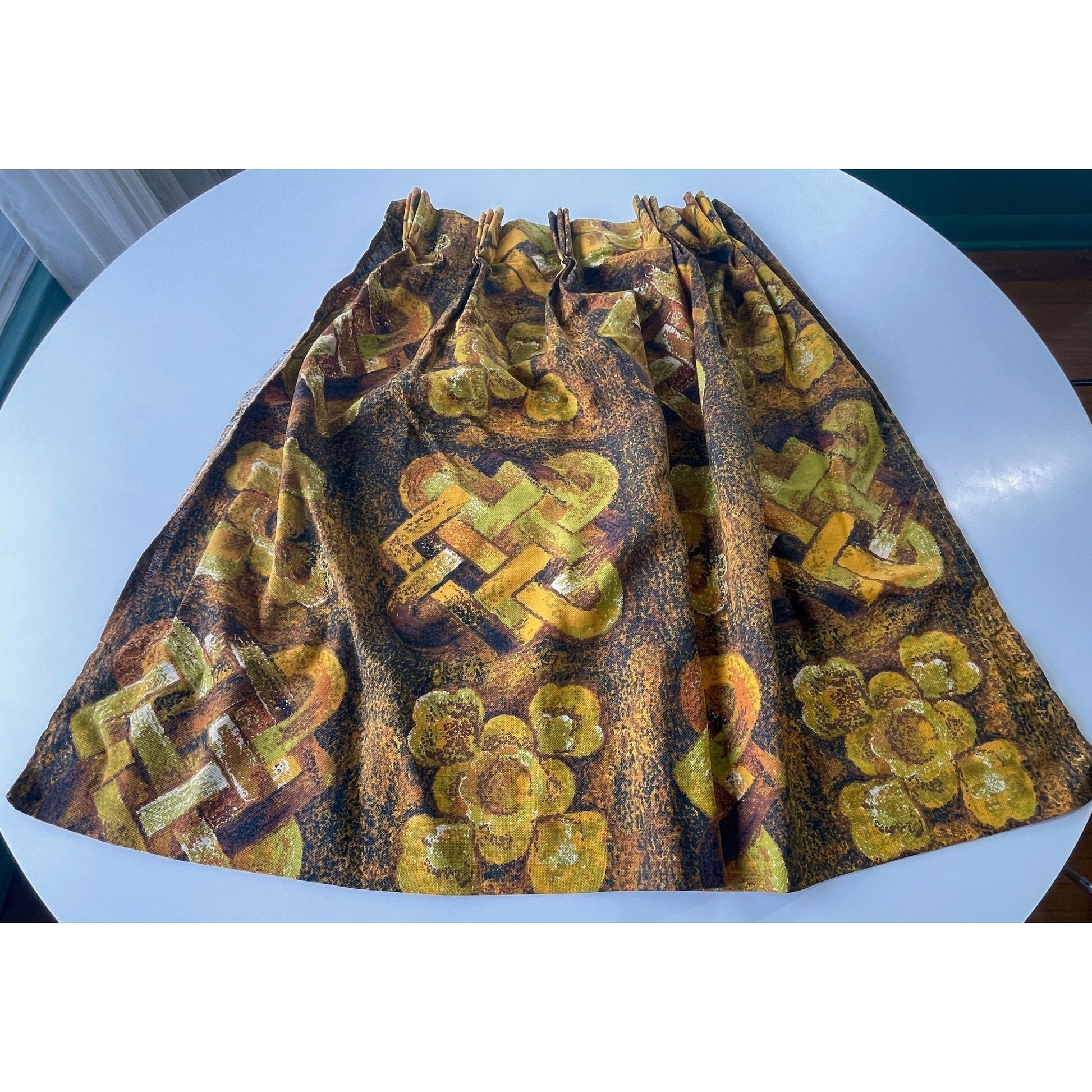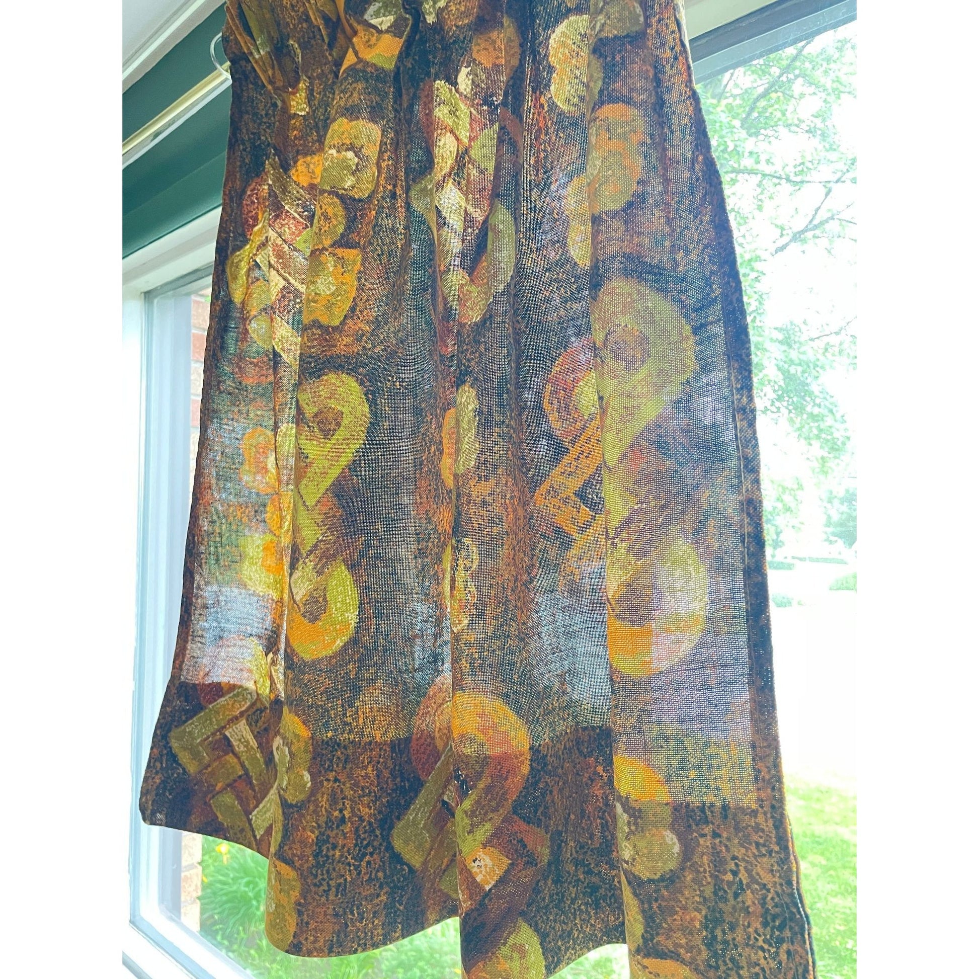 Vintage 60s pleated curtain, MOD orange and brown geometric pattern
