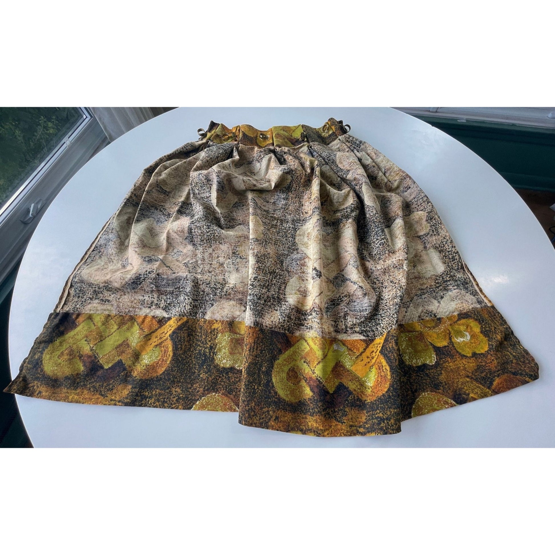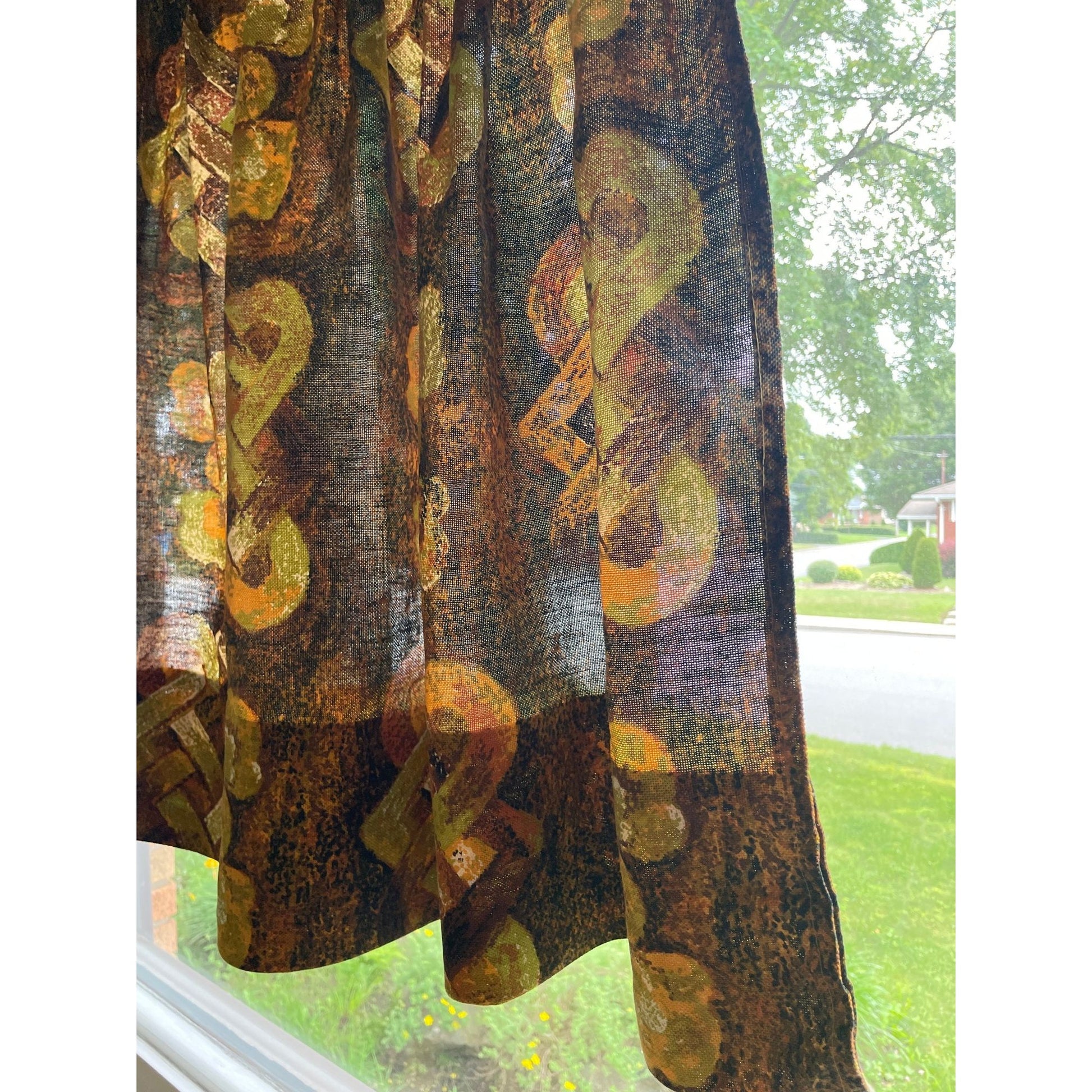 Very crisp material, likely a cotton or cotton blend, print is vibrant in yellow/orange and brown and shows no fading.
