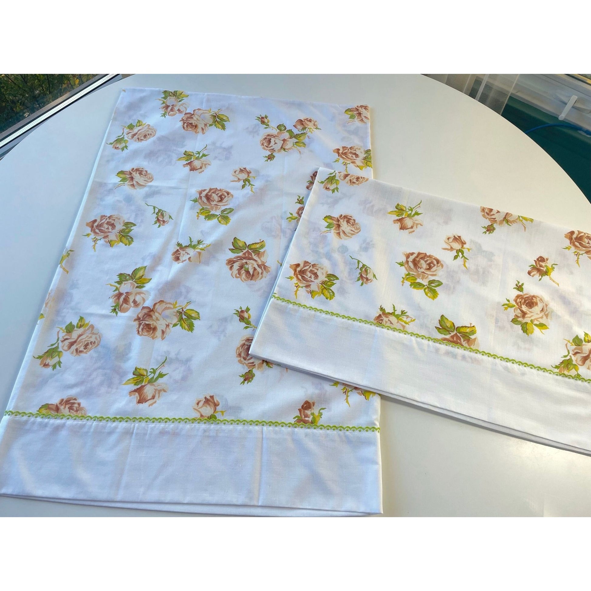 Vintage 70s pillowcases set, yellow orange floral, TruPrest