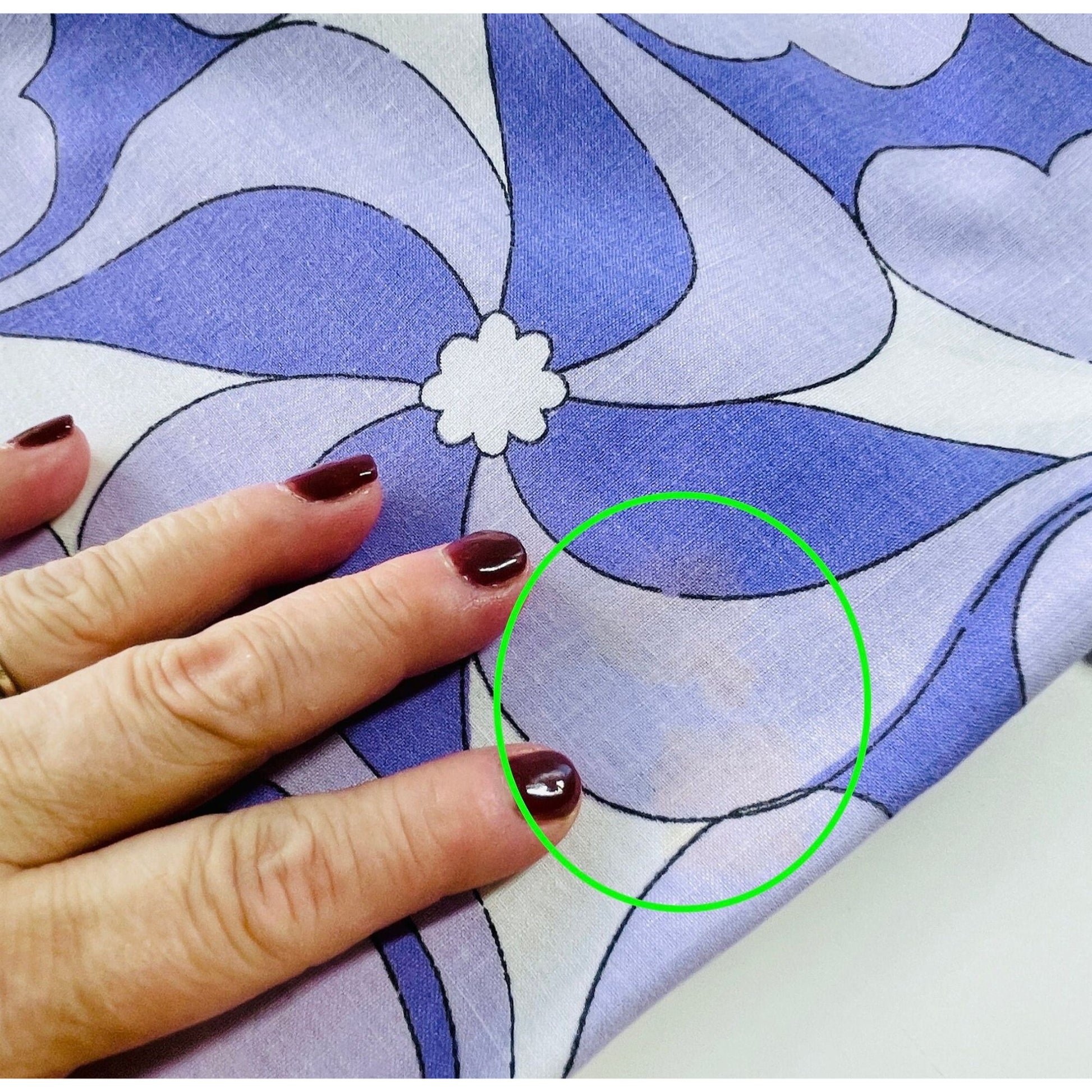 good vintage pre-owned condition with minimal wear, some thinning and fading. No holes or stains I could find. There is one discolored spot, please see pictures for accuracy.