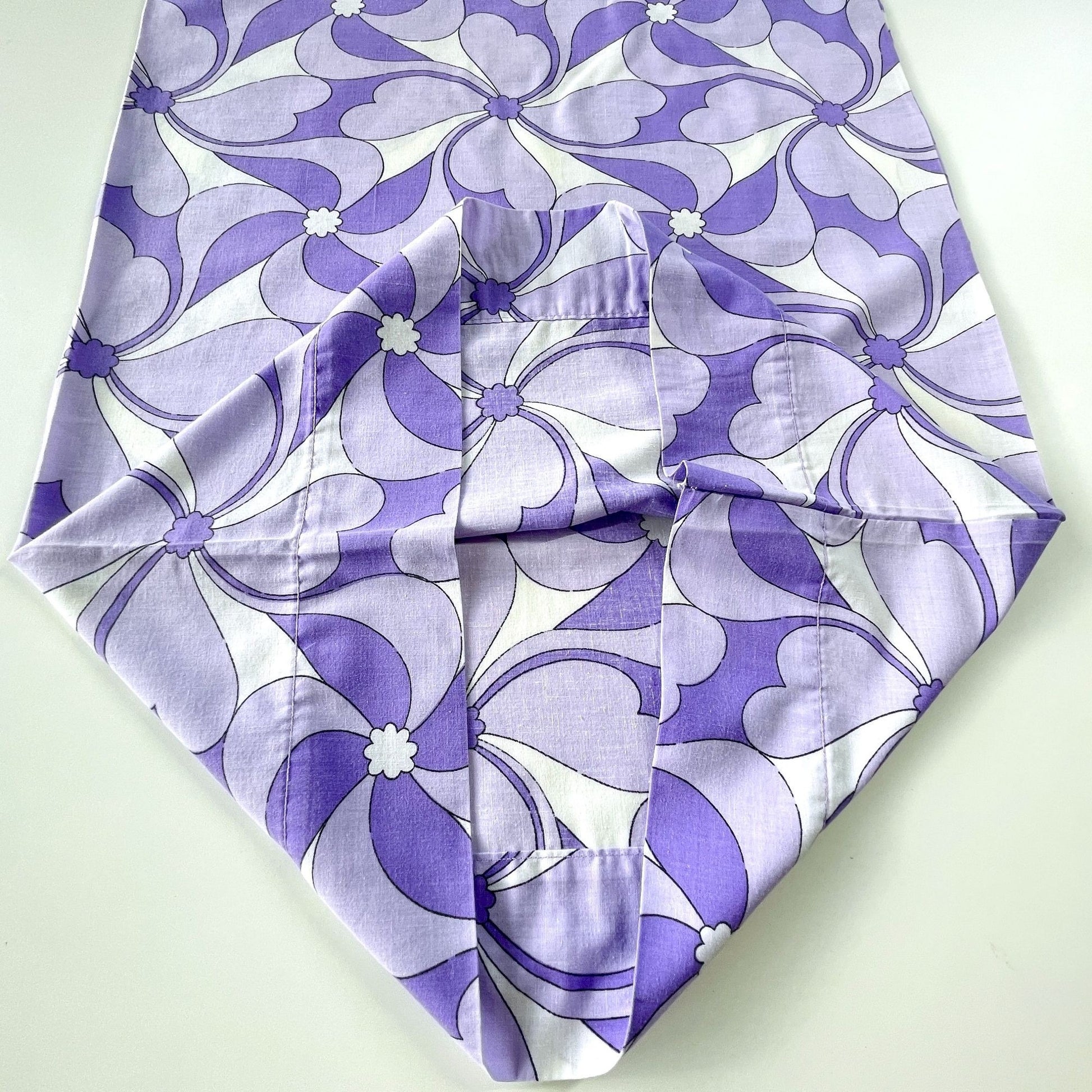 lovely 70s single pillowcase, purple pinwheel floral pattern