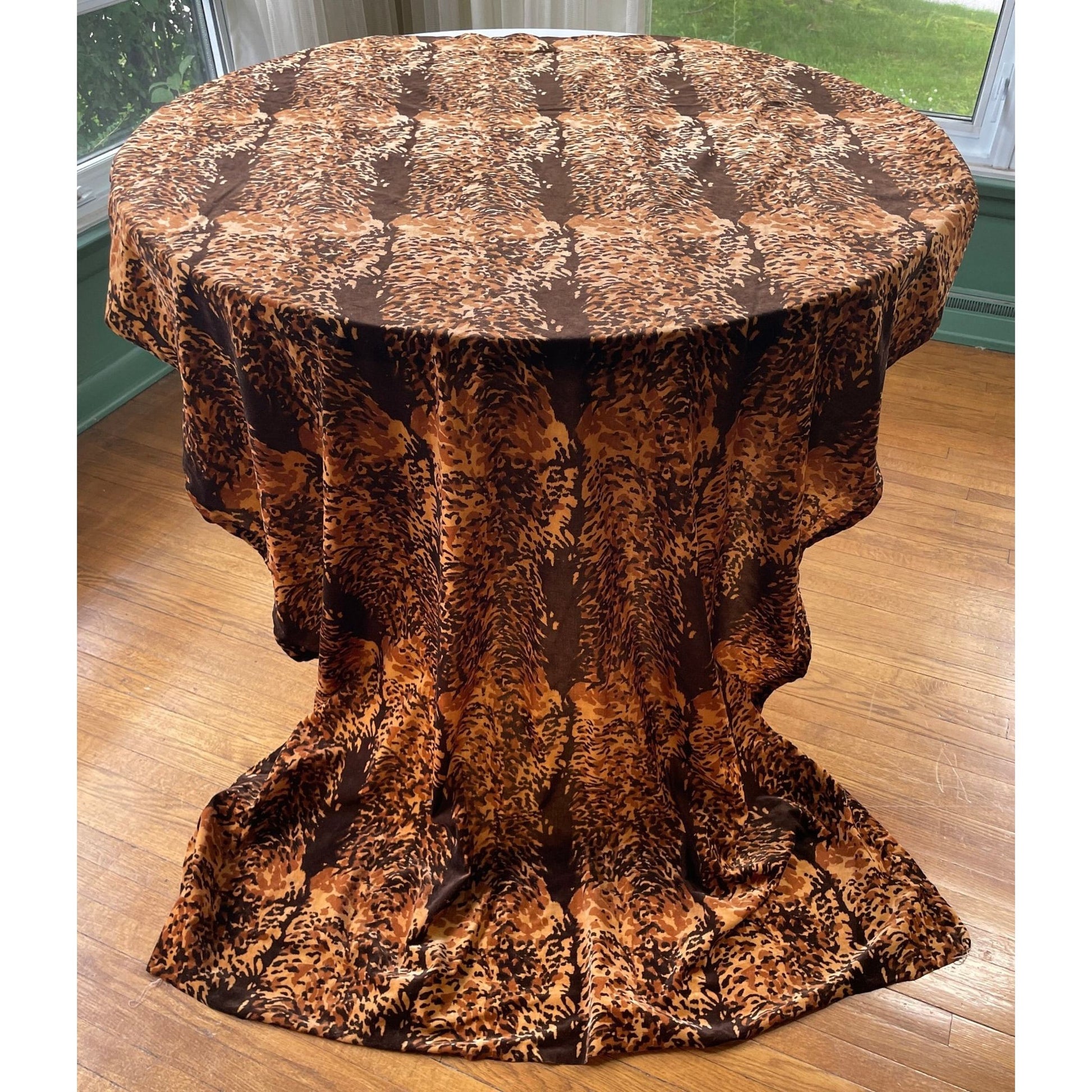 Animal print, looks like a leopard print, lined with a linen type material. Bottom is weighted to insure good draping. Can be hung using a regular size rod.