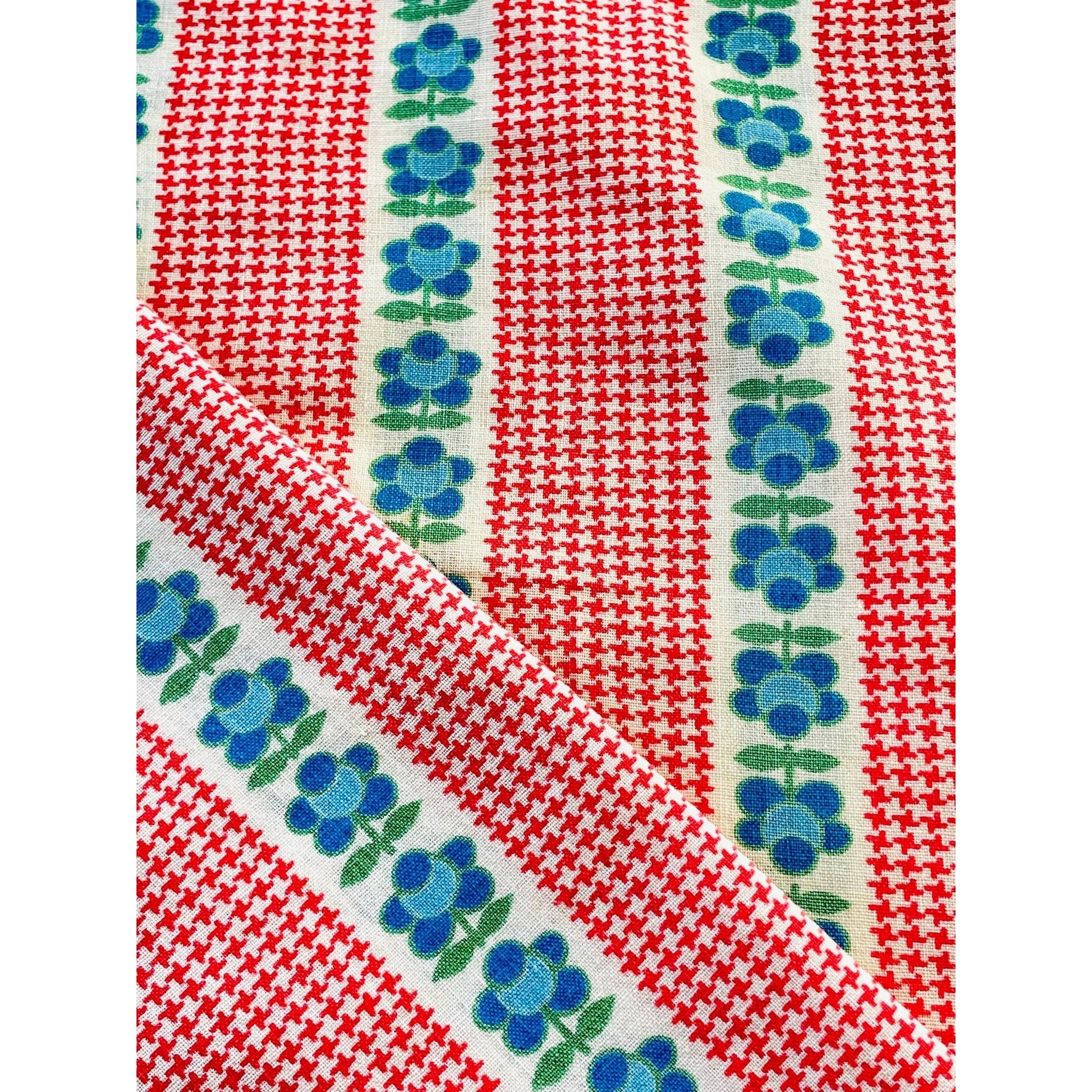 Adorable set of 80s pillowcases, red houndstooth with blue and green flowers