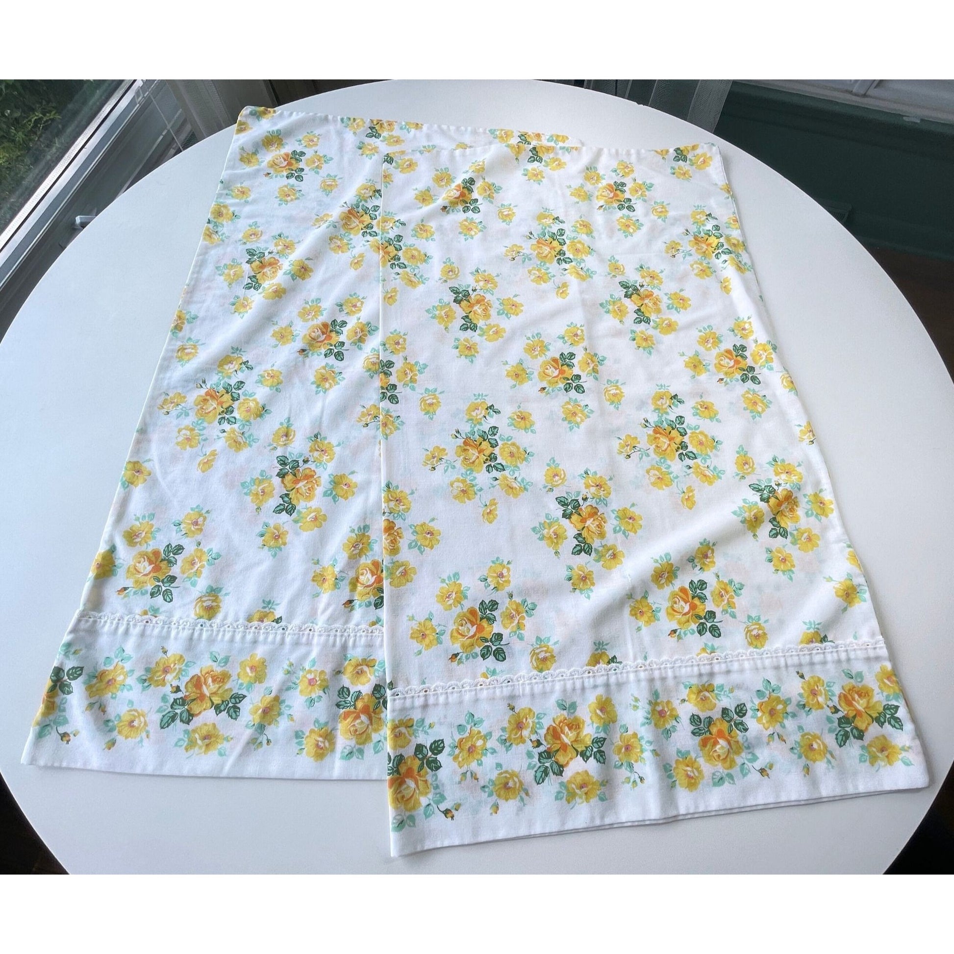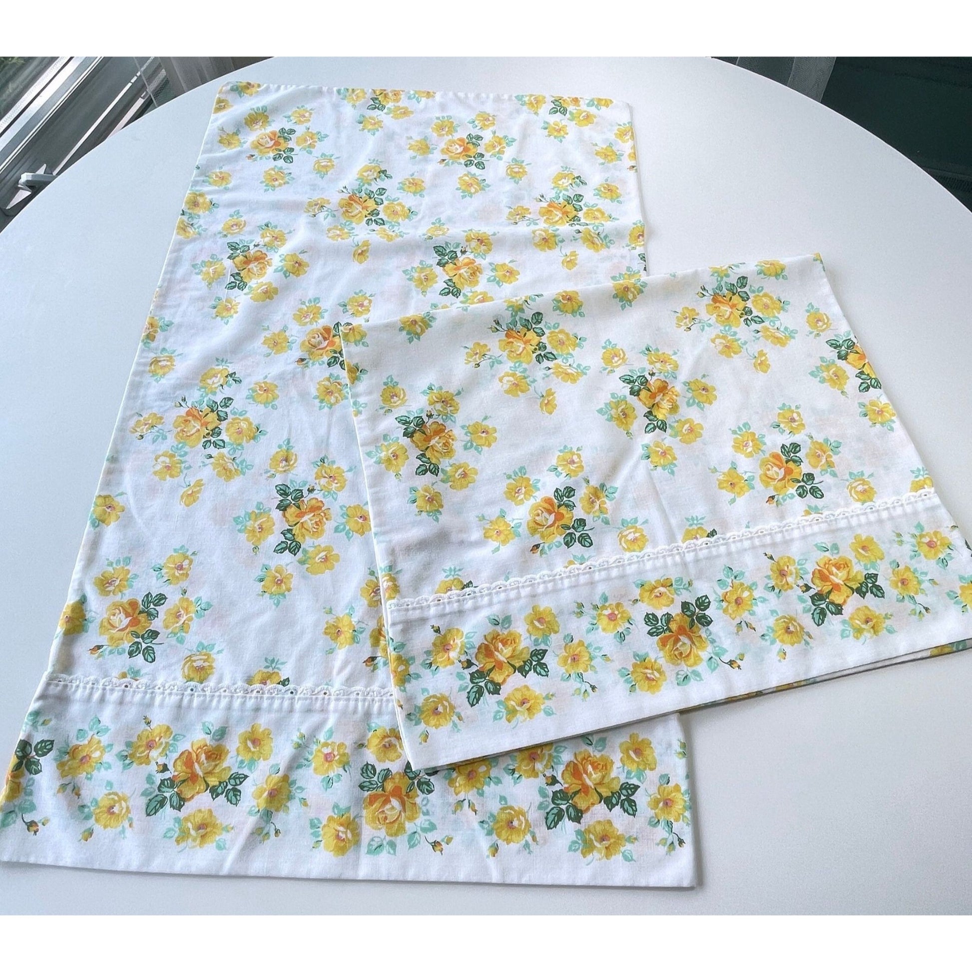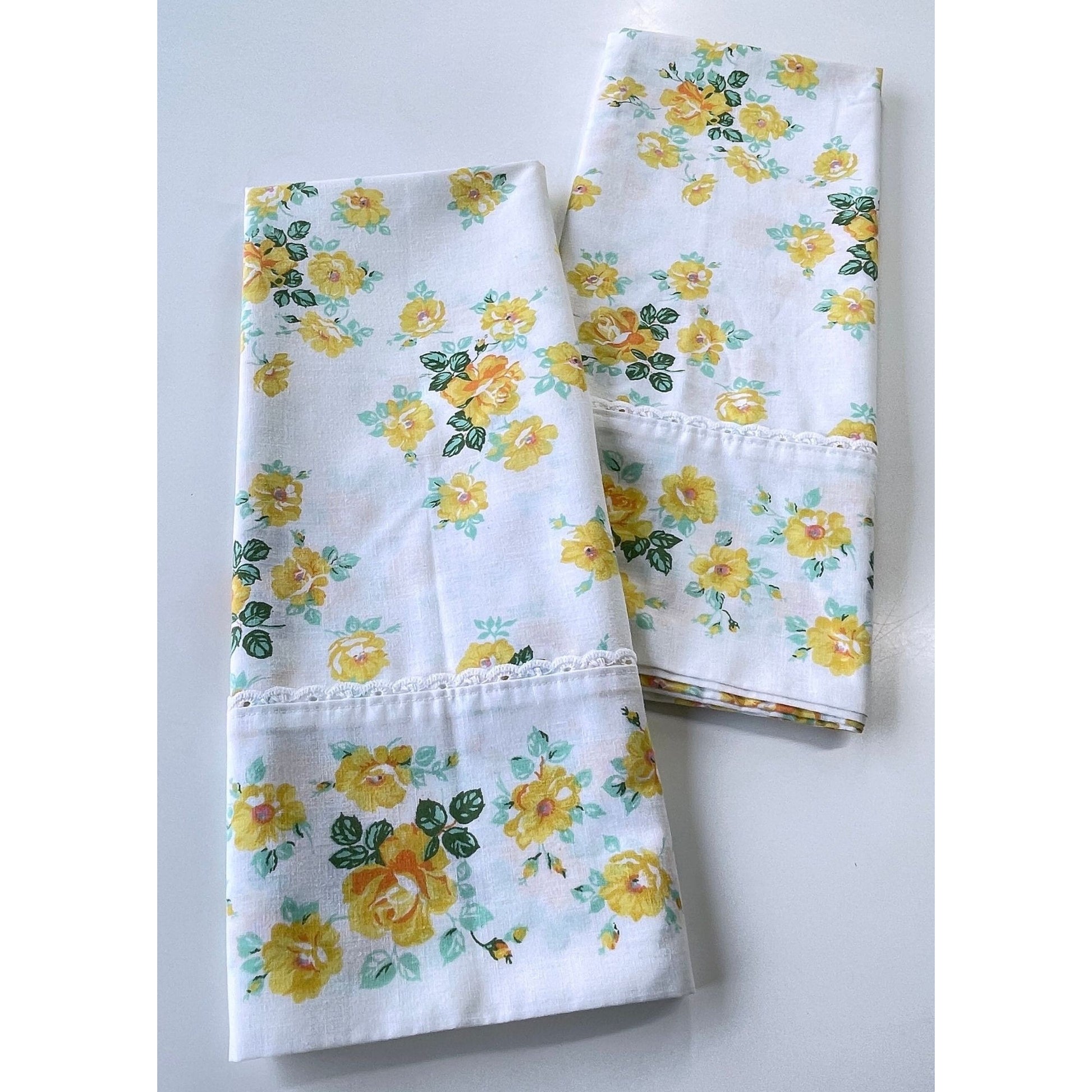 Adorable set of 70s pillowcases, yellow roses flowers with greenery, price is for the pair.