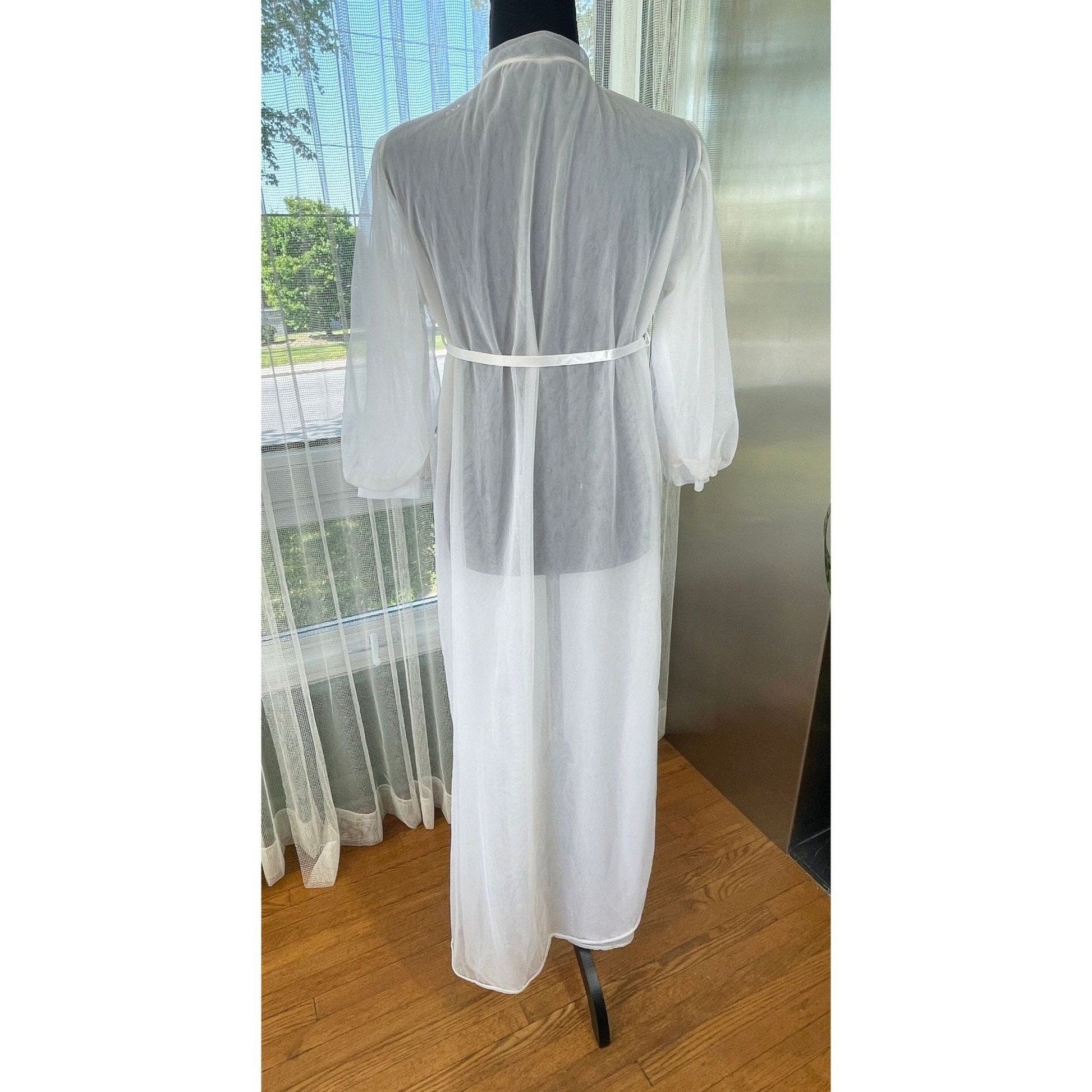 Vintage 1960s peignoir, white chiffon, bridal honeymoon wear