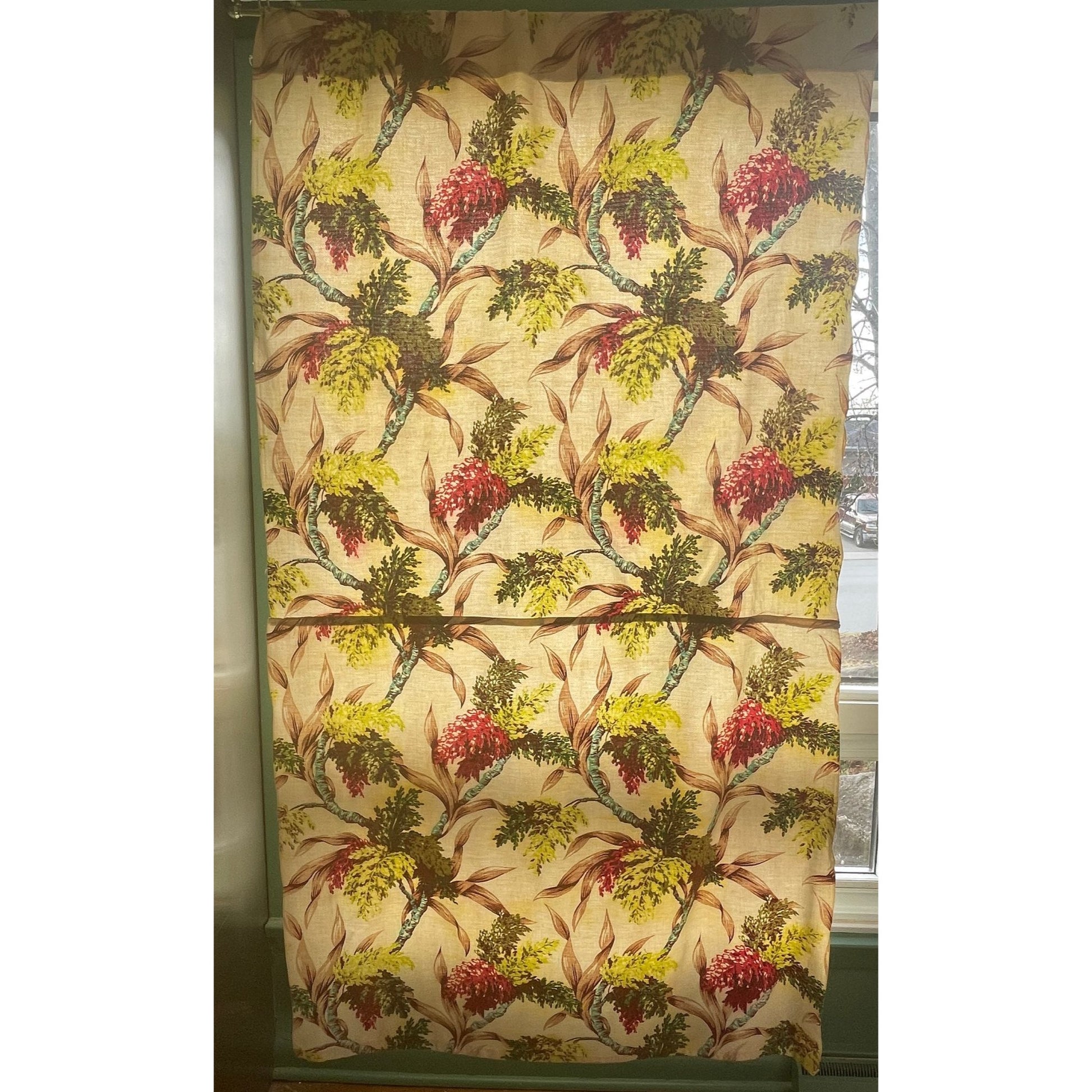Please note that the panel is made with two pieces sewn together width wise. the seam is showing when the panel is hung, however it could be unstitched and make two shorter panels. Material can also be used to upholster or to make cushions!