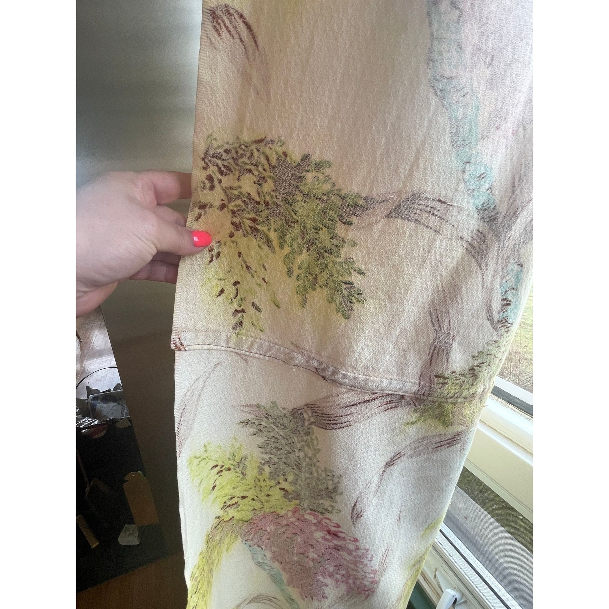 in excellent condition, no visible wear, large floral tropical print, bright colors: yellow, hot pink, green, brown and cream.