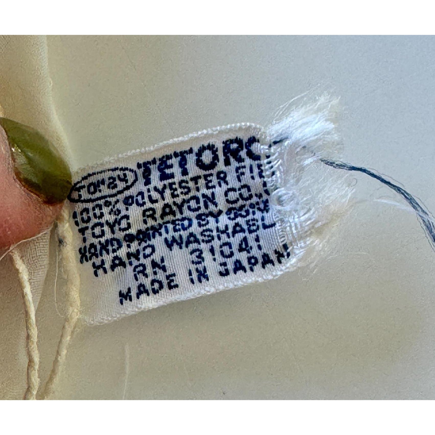 made in Japan, brand is likely Tetoro (part of the label is frayed). They are 100% polyester and hand painted. The label indicates that they are washable and I did launder them by hand and hung to dry with no issue.