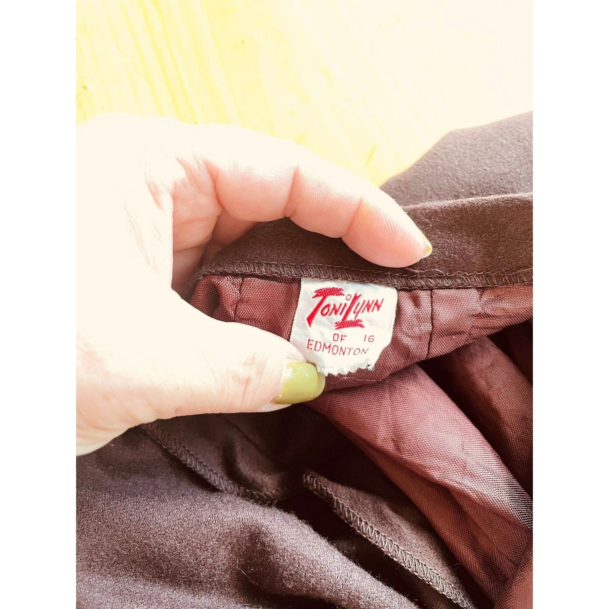 Vintage 1950s skirt, 100% wool, chocolate brown, Toni Lynn of Edmonton