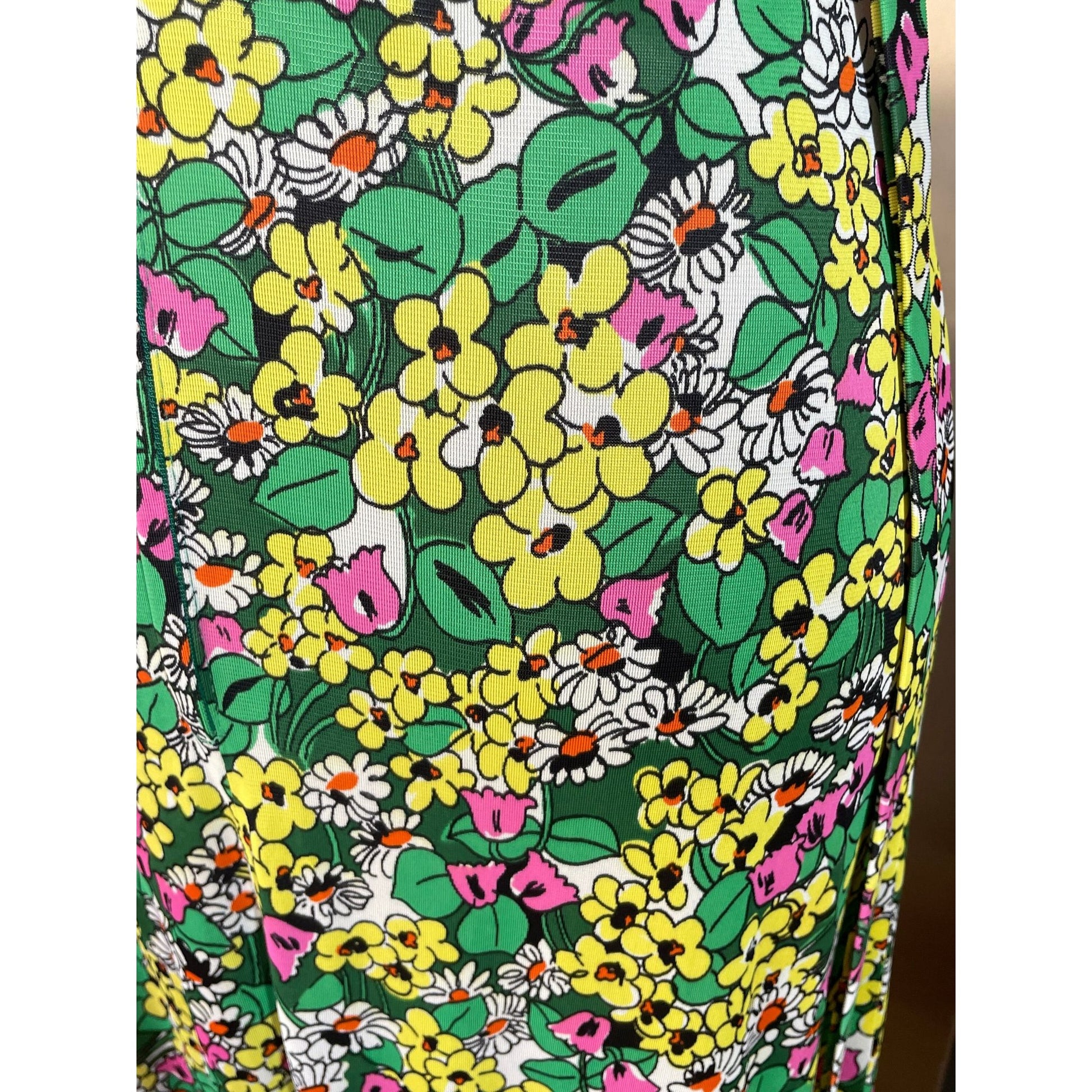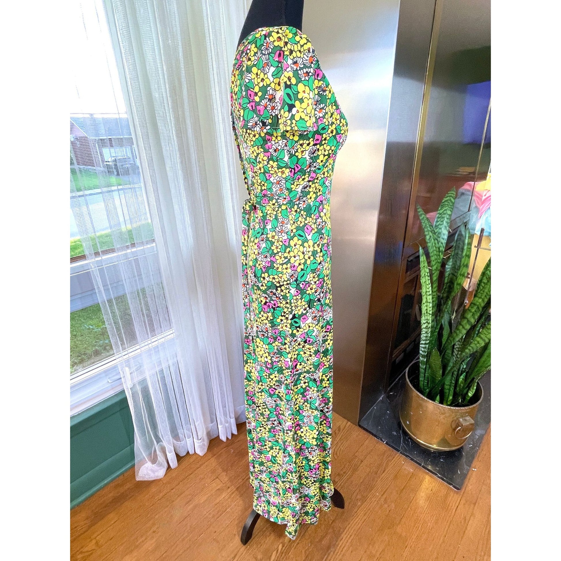 Vintage 1960s maxi dress, green, yellow and pink floral