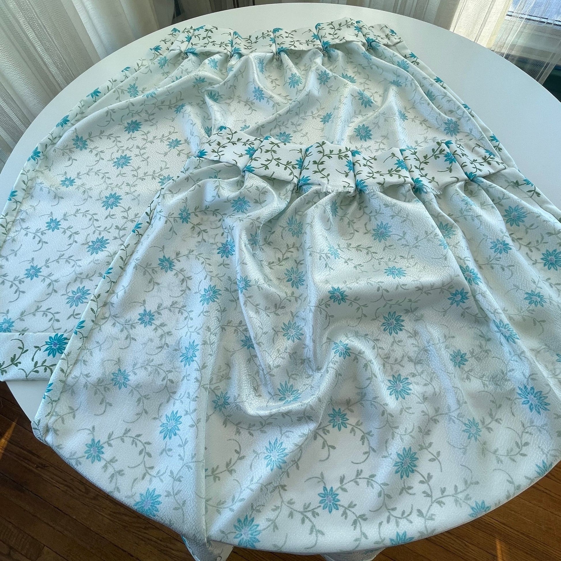 Vintage 60s blue fowers pleated curtains panels