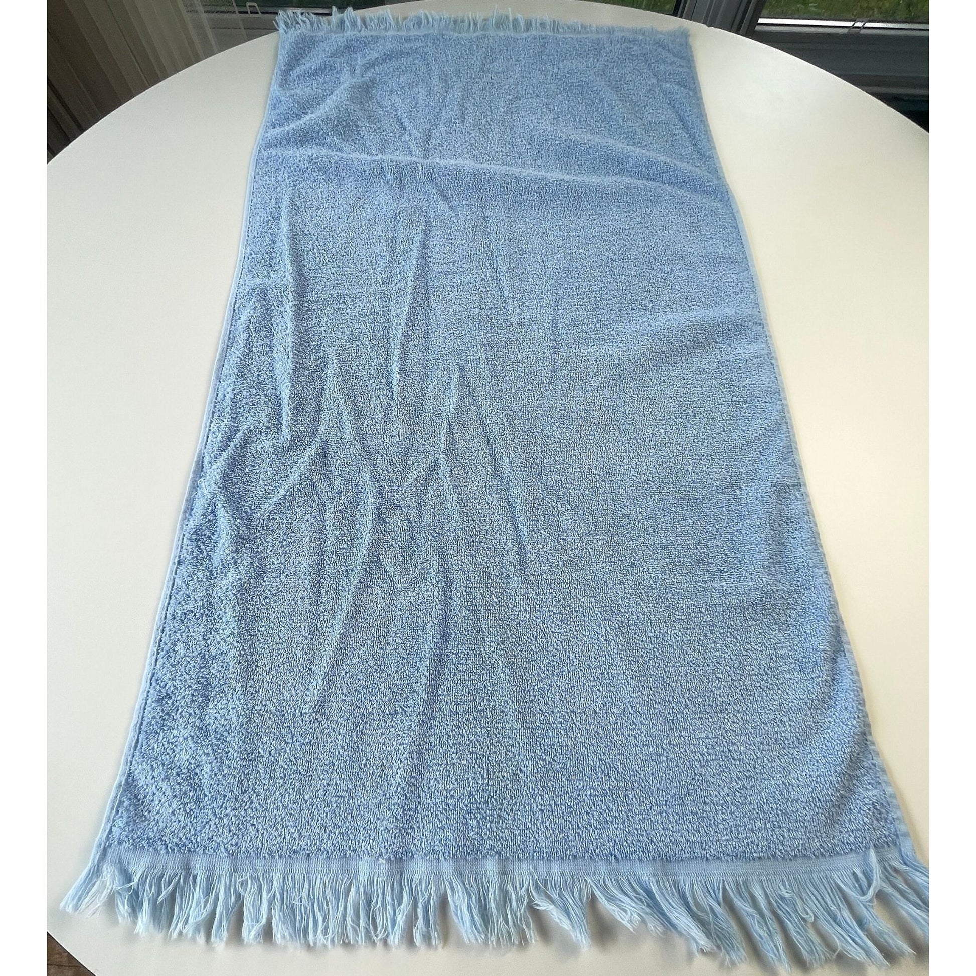 Vintage 70s bath towel, blue purple teal flowers, fringed,