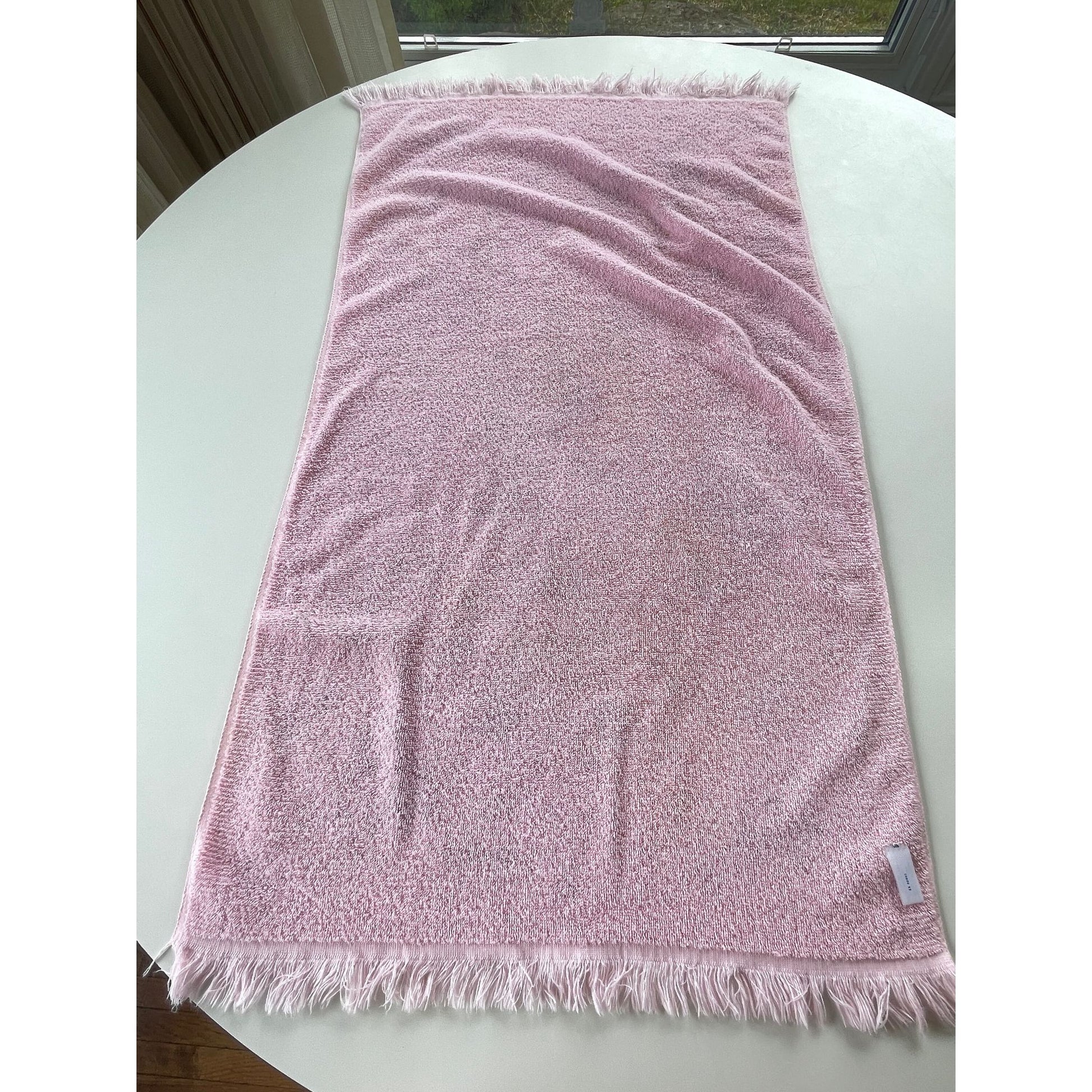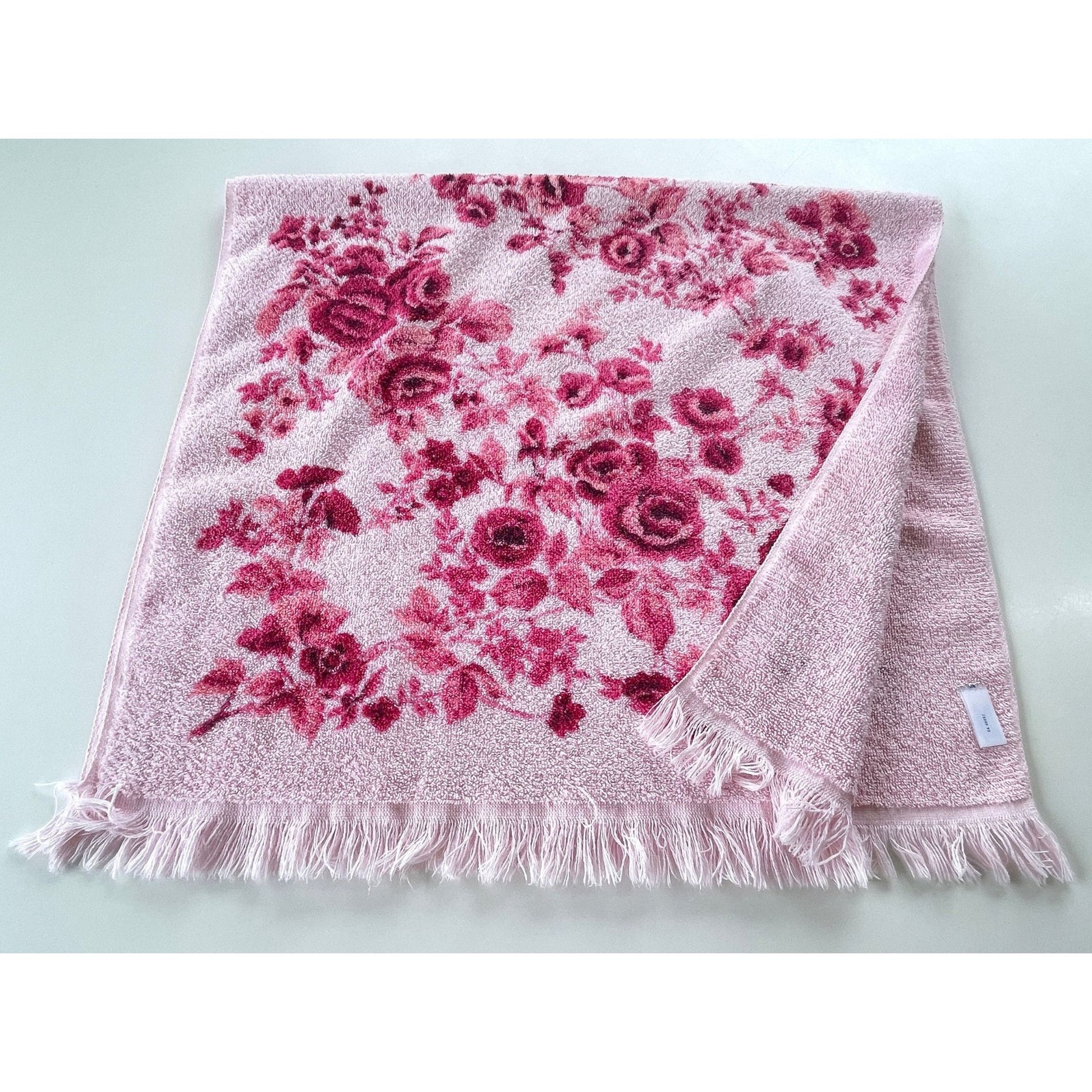 lovely vintage bath towel, hot pink roses on pink background. Made in Canada, there is no maker on the label