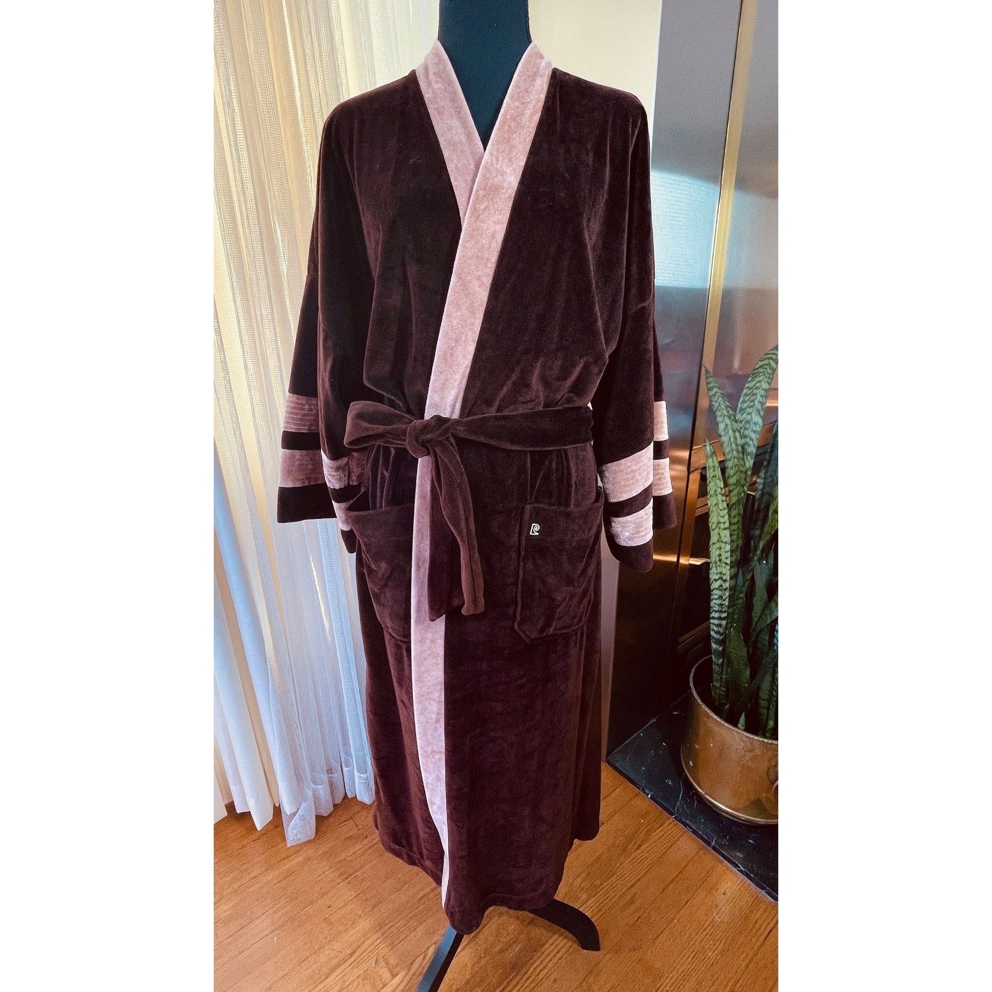 Vintage 1970s bathrobe, chocolate brown velvet, Pierre Cardin