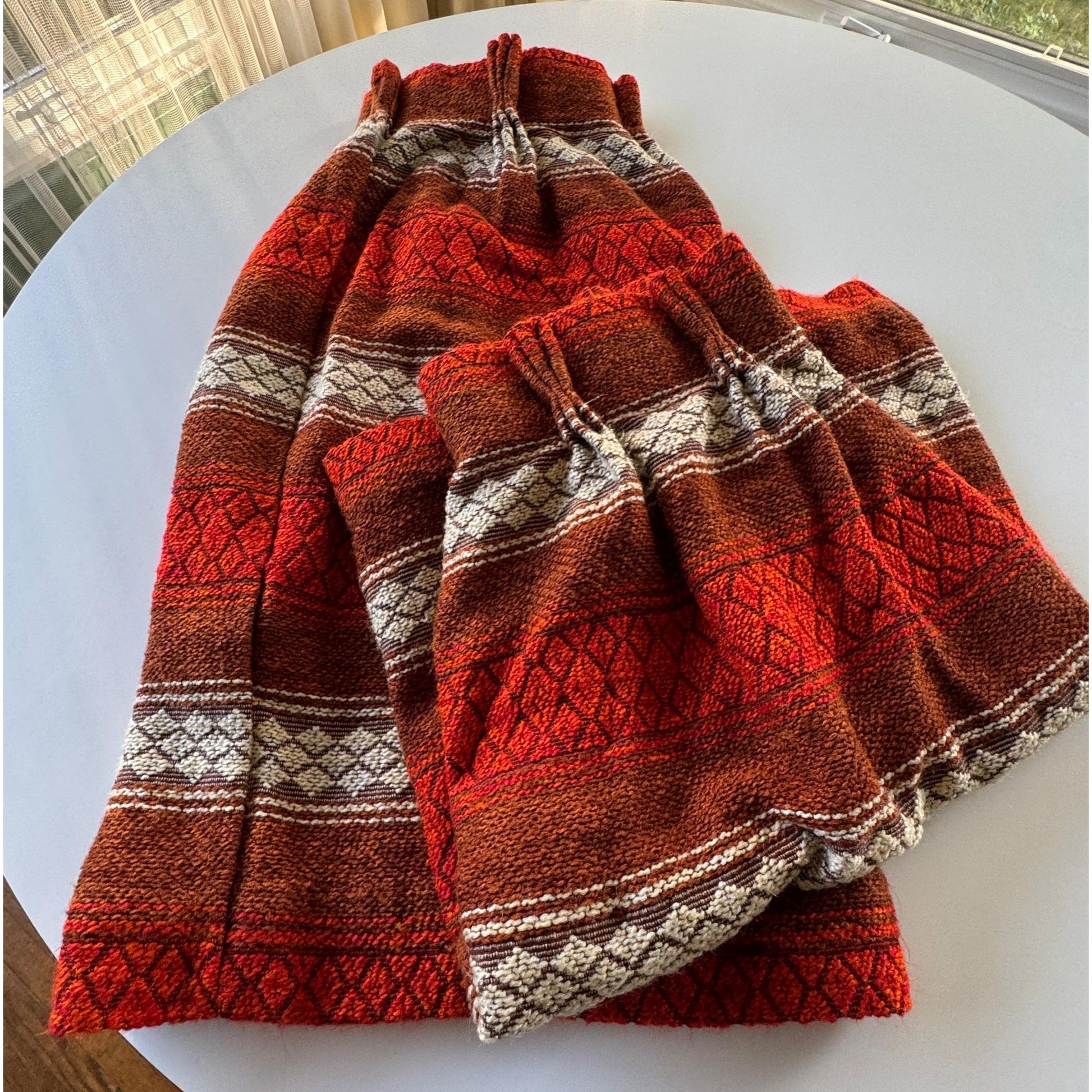 Vintage 70s pleated curtain, brick red, brown, beige stripes panel
