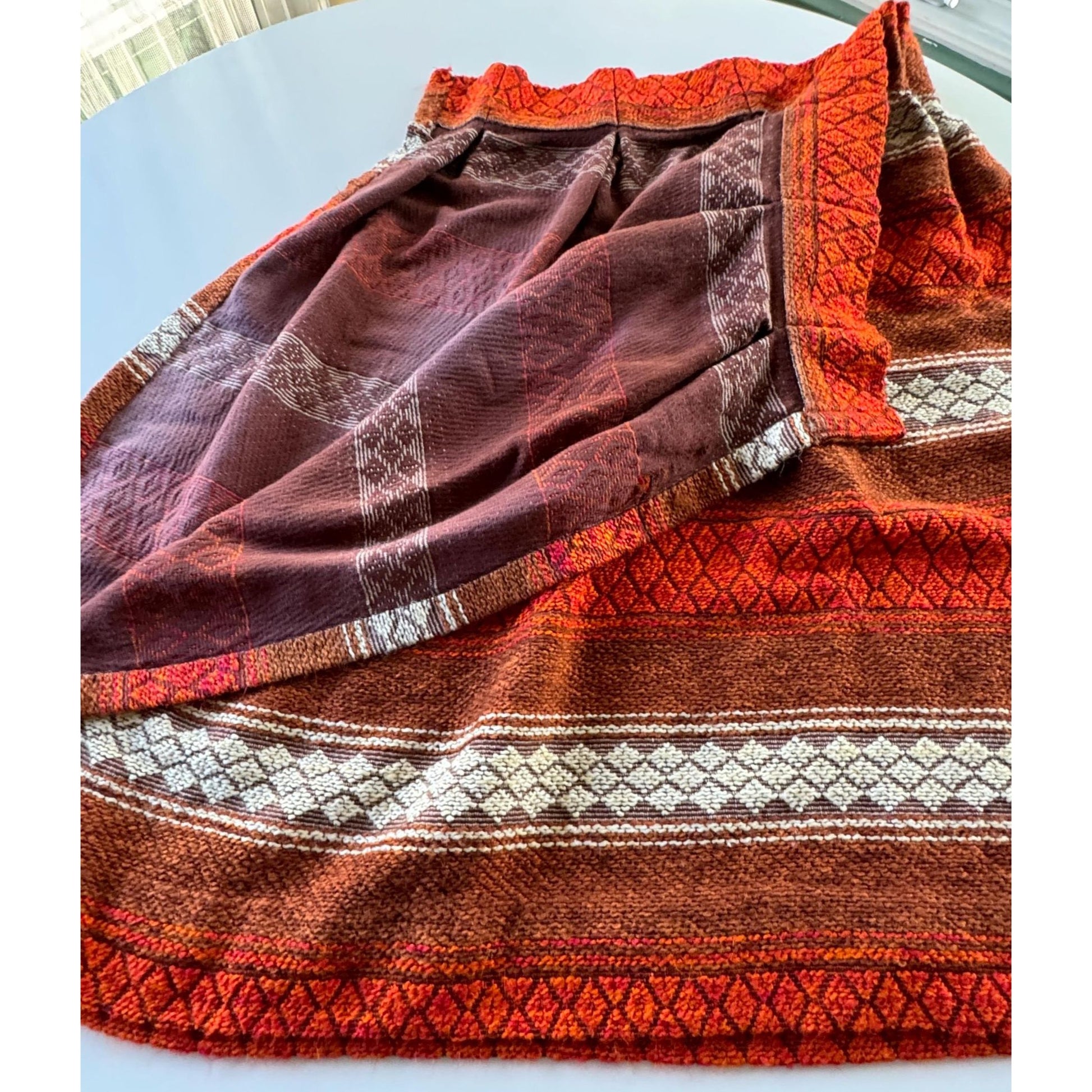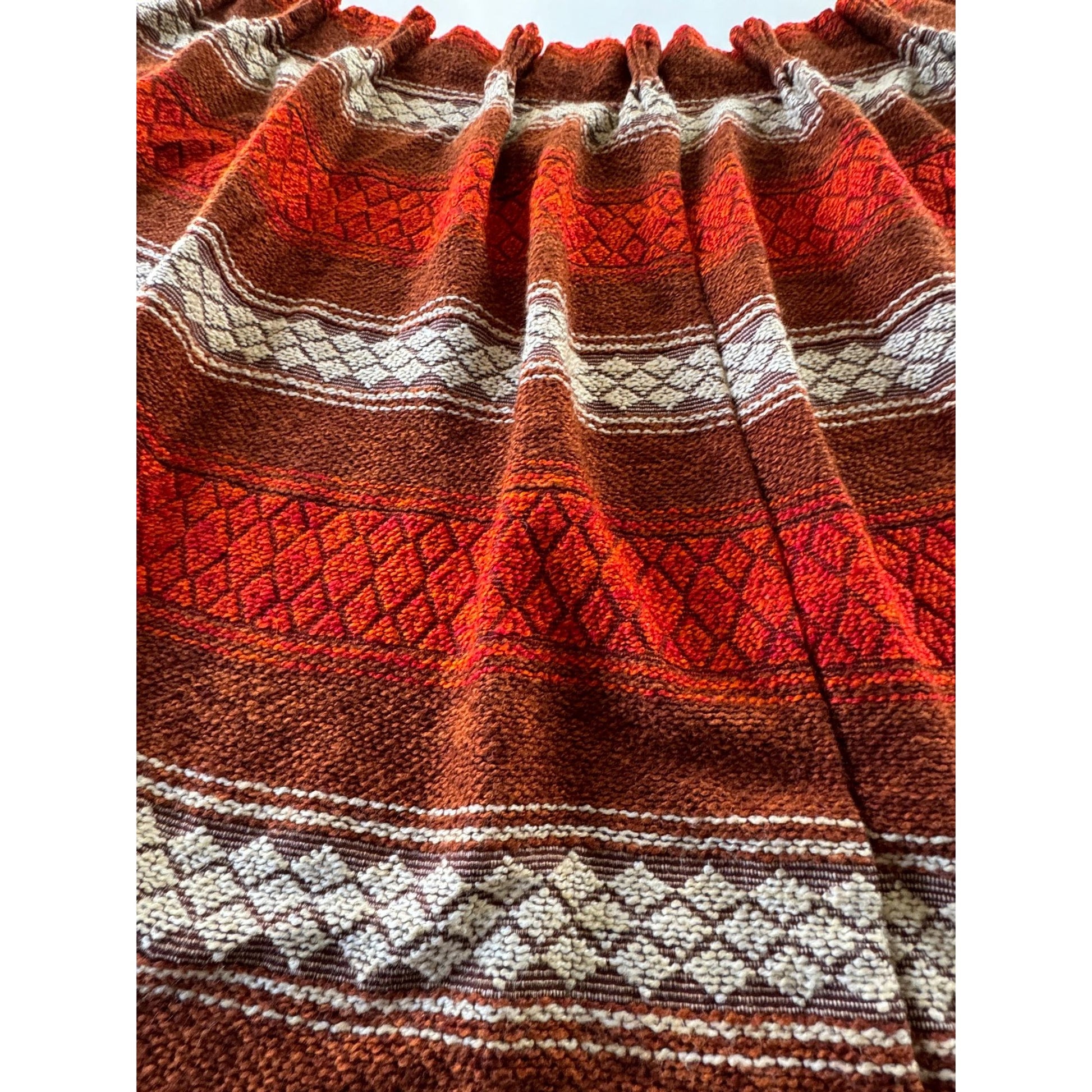 absolutely vibrant colors, deep red and brown horizontal stripes on beige background. Material is like a loose corduroy velours, very soft and thick.