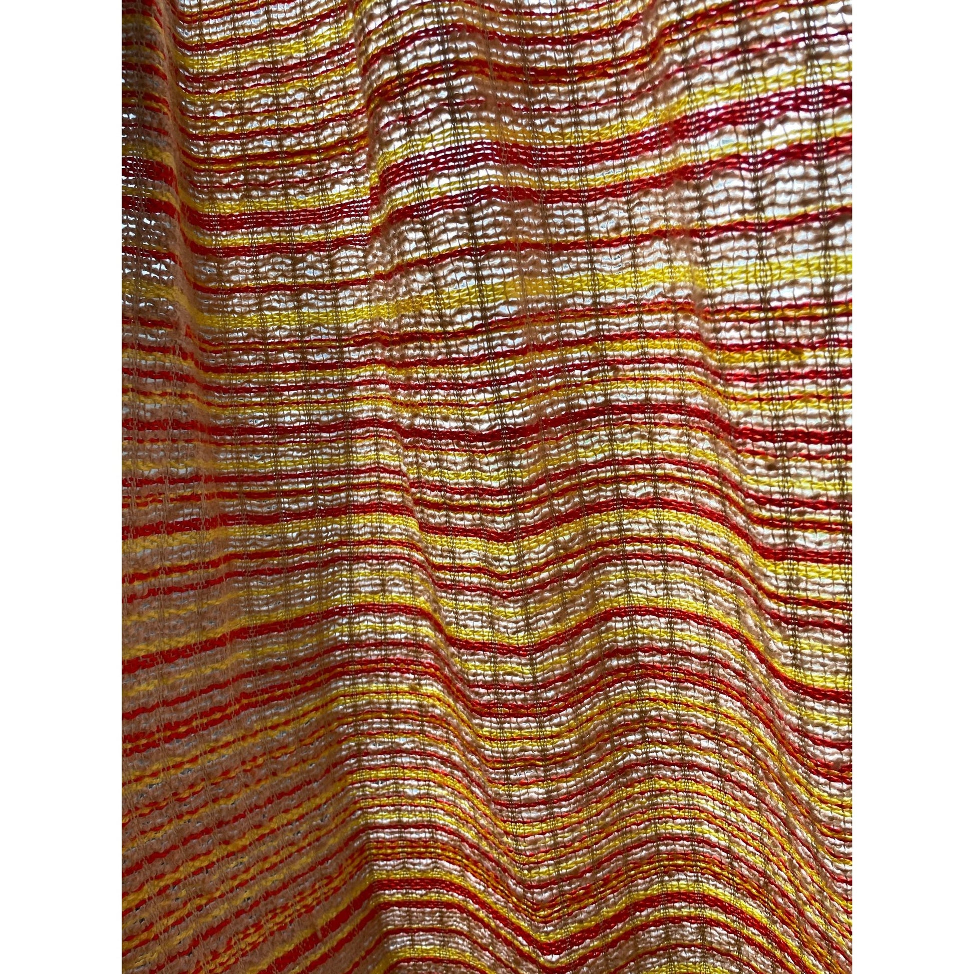 Iconic 1970s colors, burnt orange, yellow, red horizontal stripes. Absolutely stunning! Would be perfect in a living room, as a statement curtain.