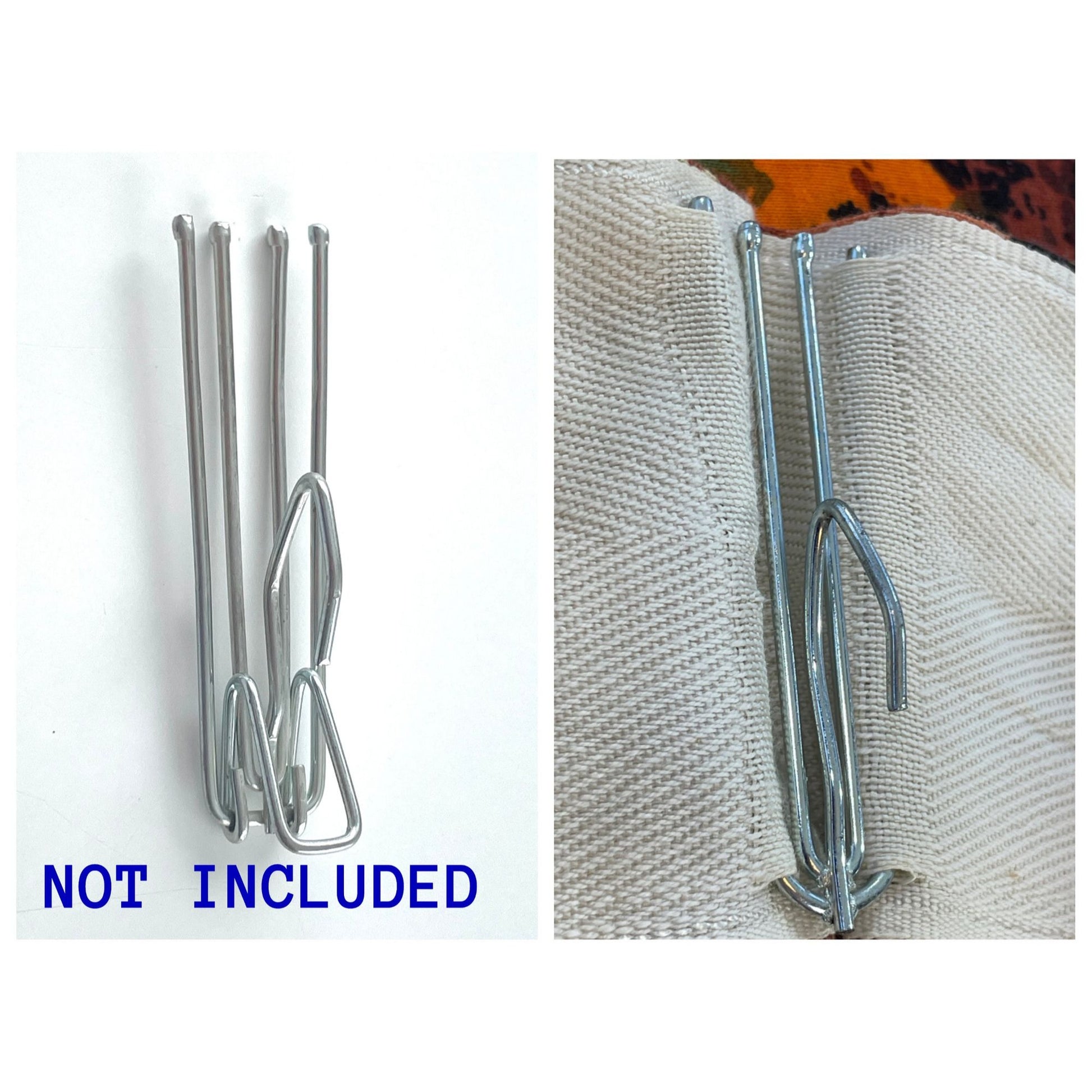 Pleated panels can be hung using pleating hooks as shown in pictures, not included.
