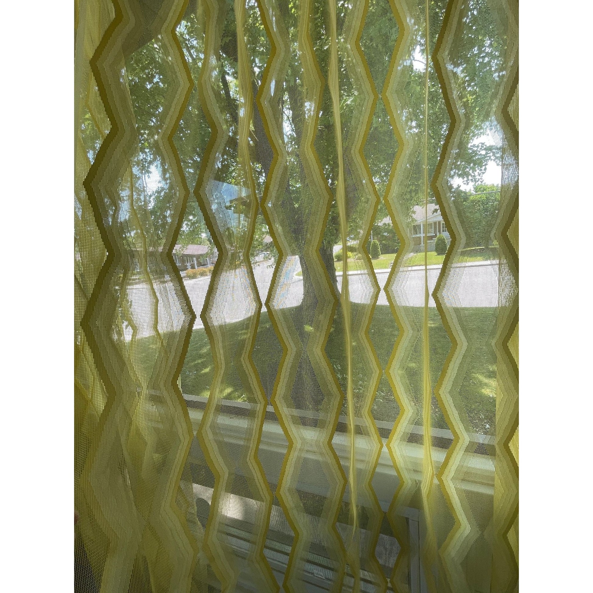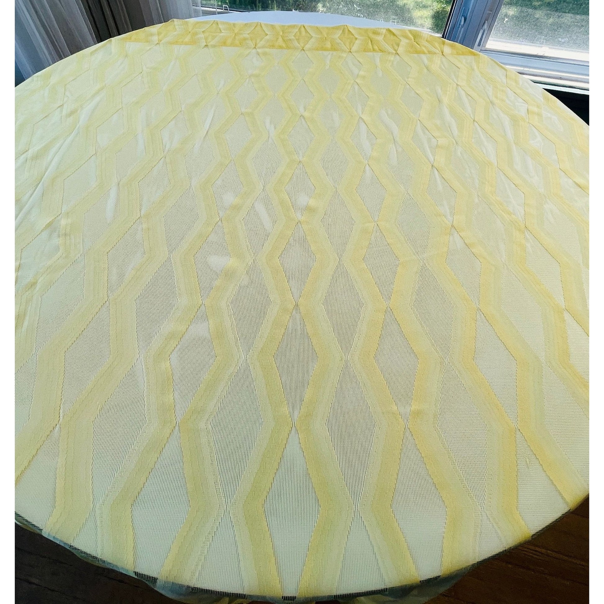 Vintage 70s curtain, gorgeous buttery and soft yellow mesh, with abstract geometric stripes, tone on tone pattern.