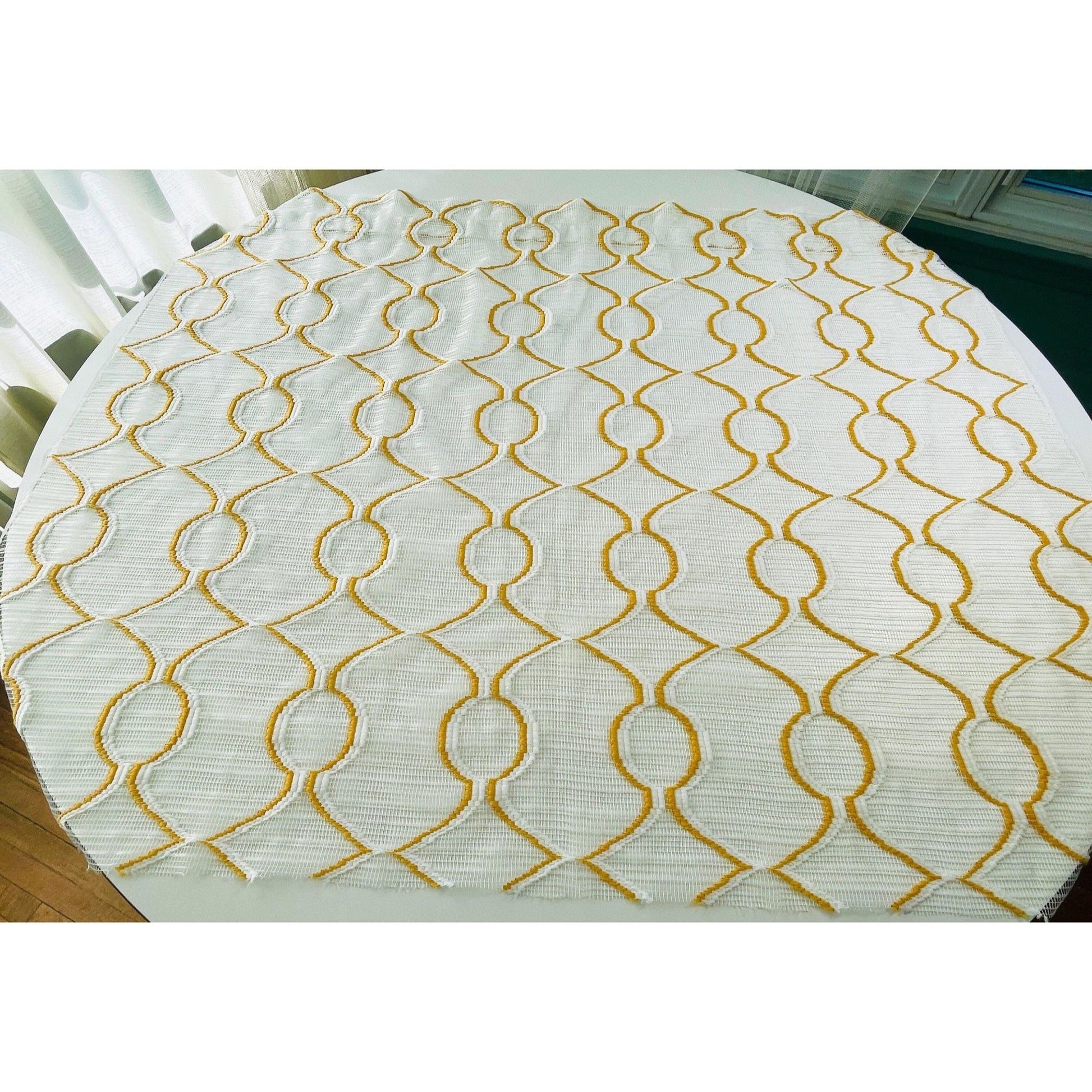 Vintage 70s curtain, yellow/orange embroidered groovy pattern