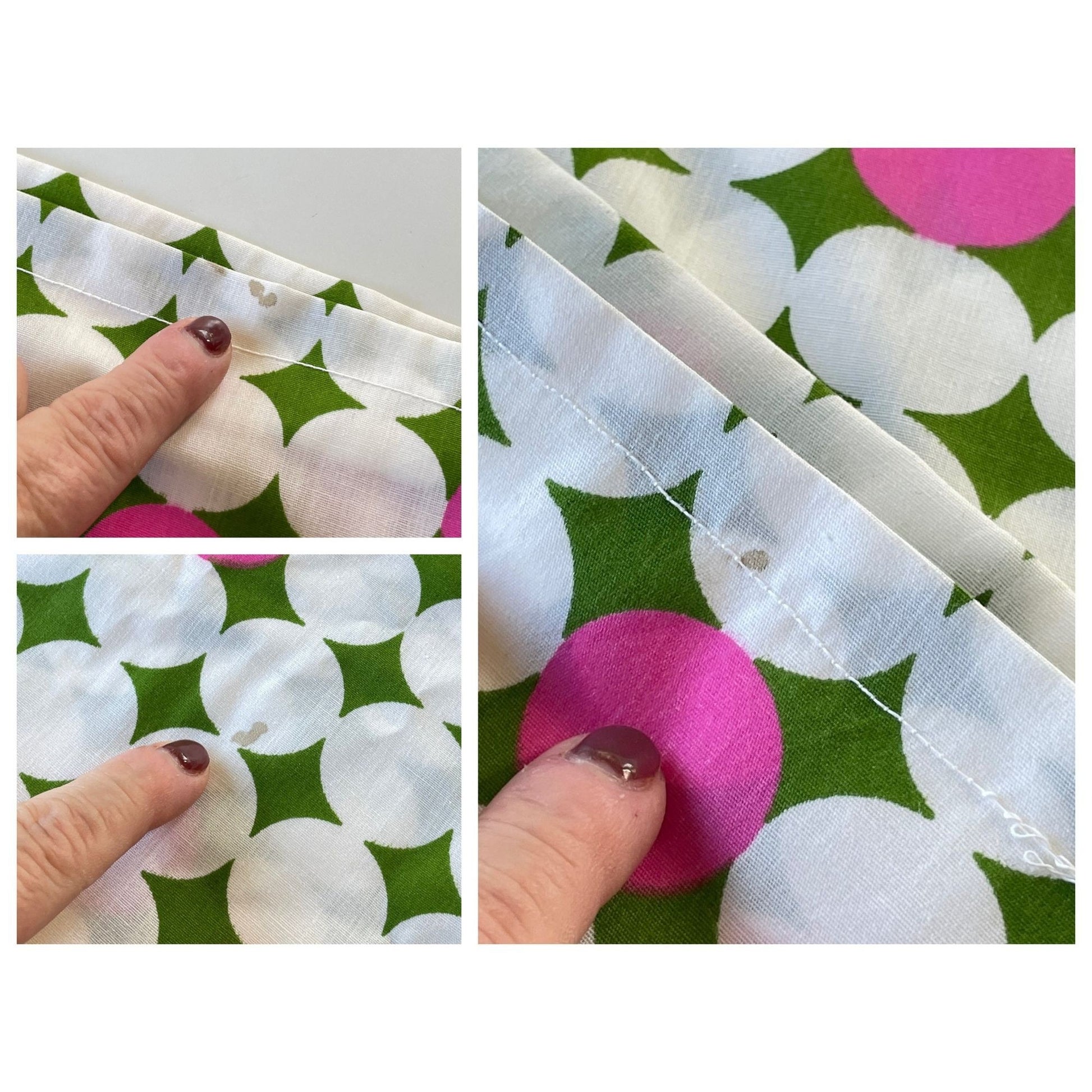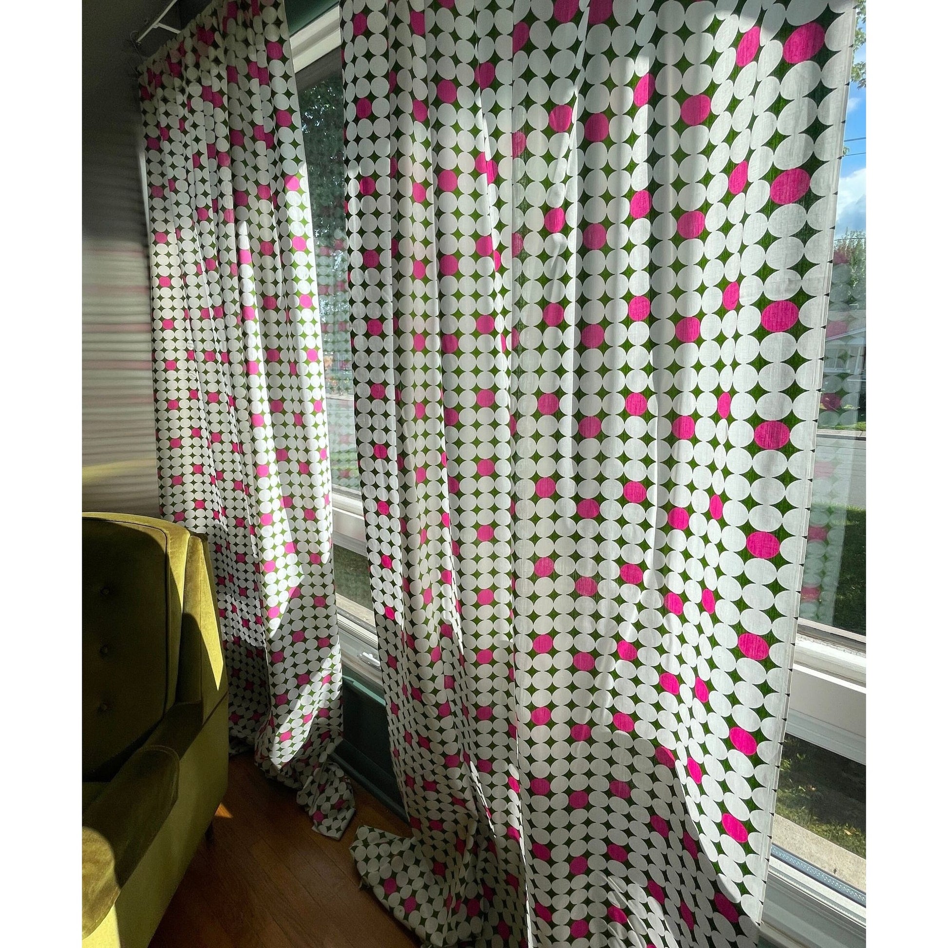 Vintage 70s curtain panels, hot pink and green geometric pattern