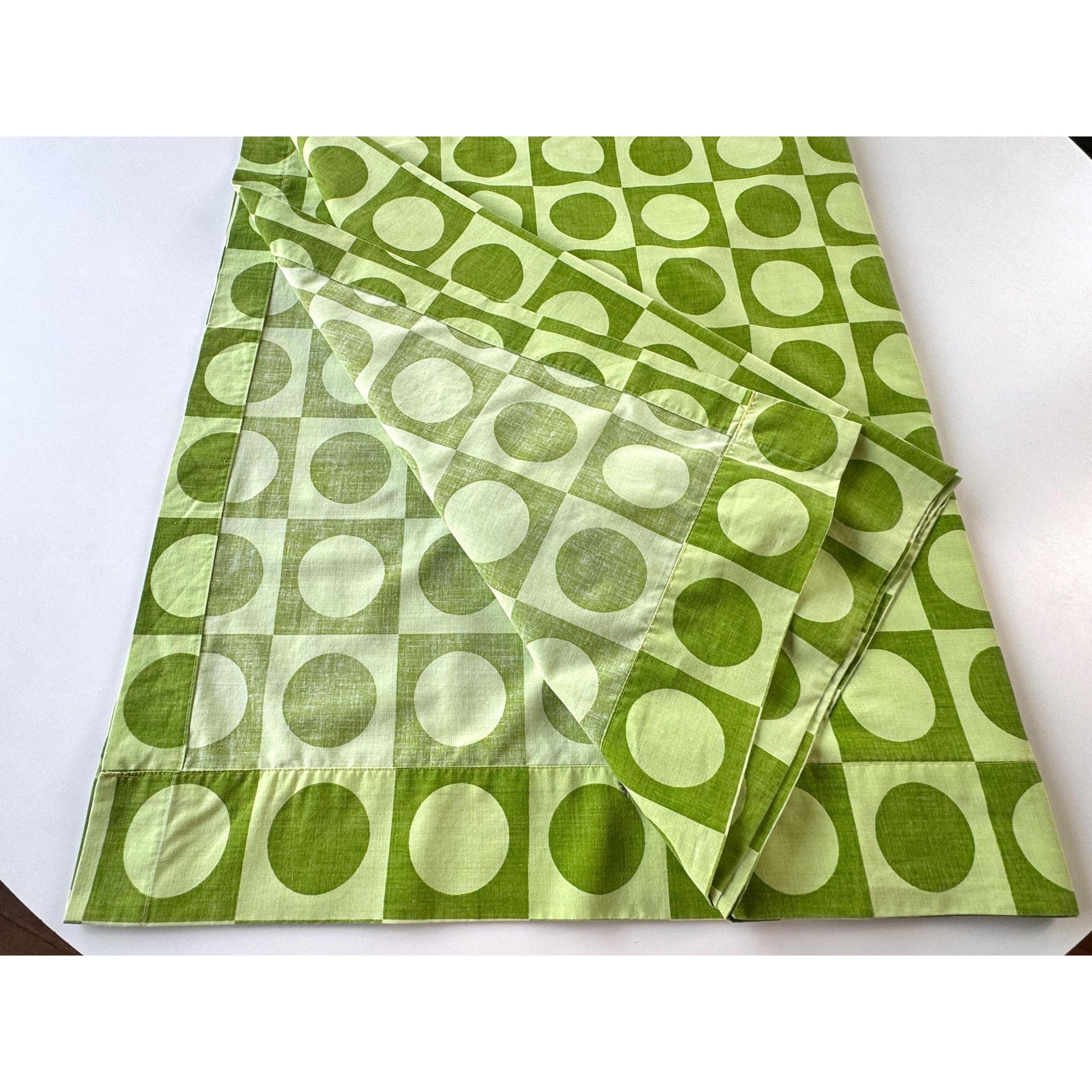 Vintage 70s flat / top sheet, avocado green geometric, twin size, Dominion Textile Truprest