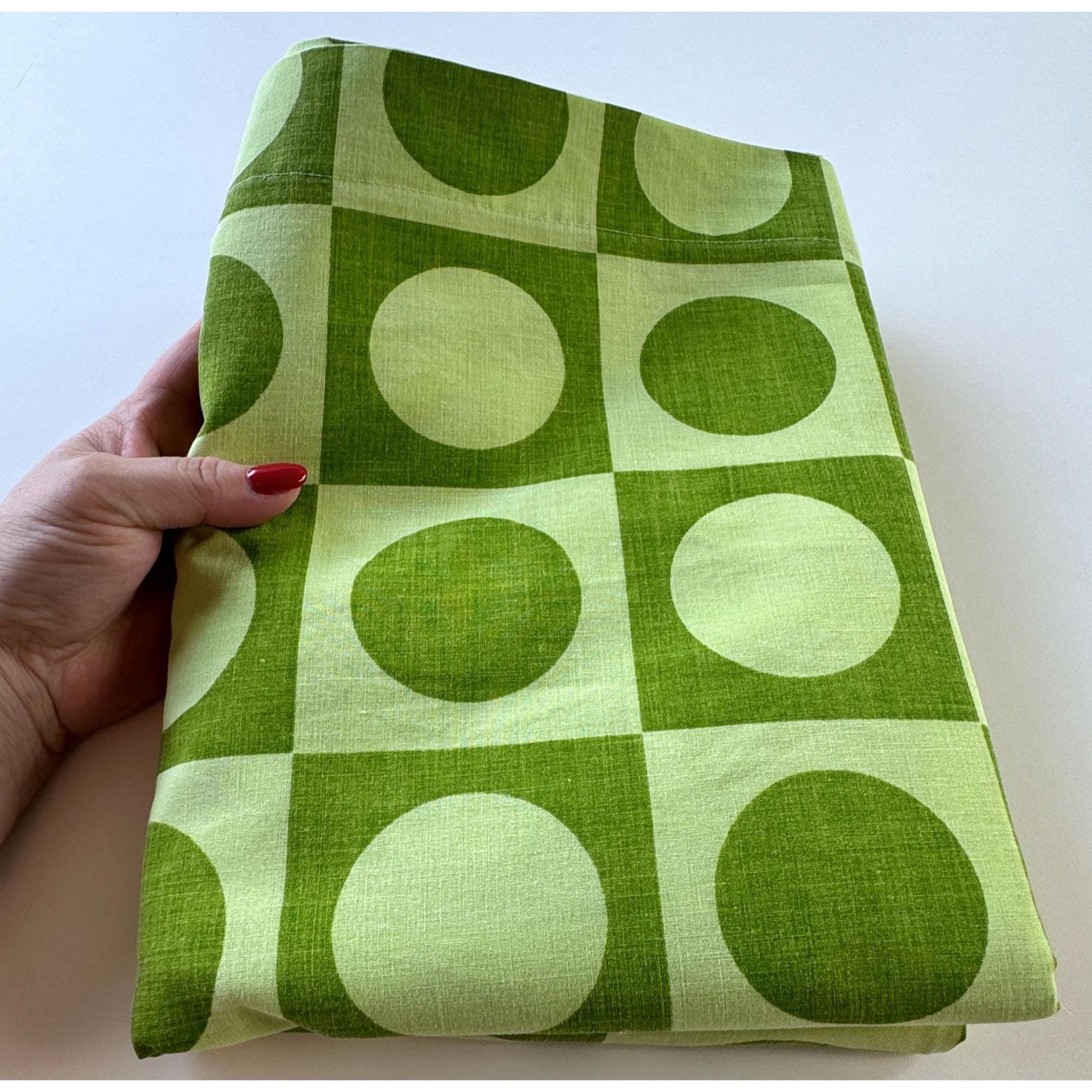 Fabulous original vintage 1970s bed sheet, flat. absolutely iconic geometric pattern, in avocado green.
