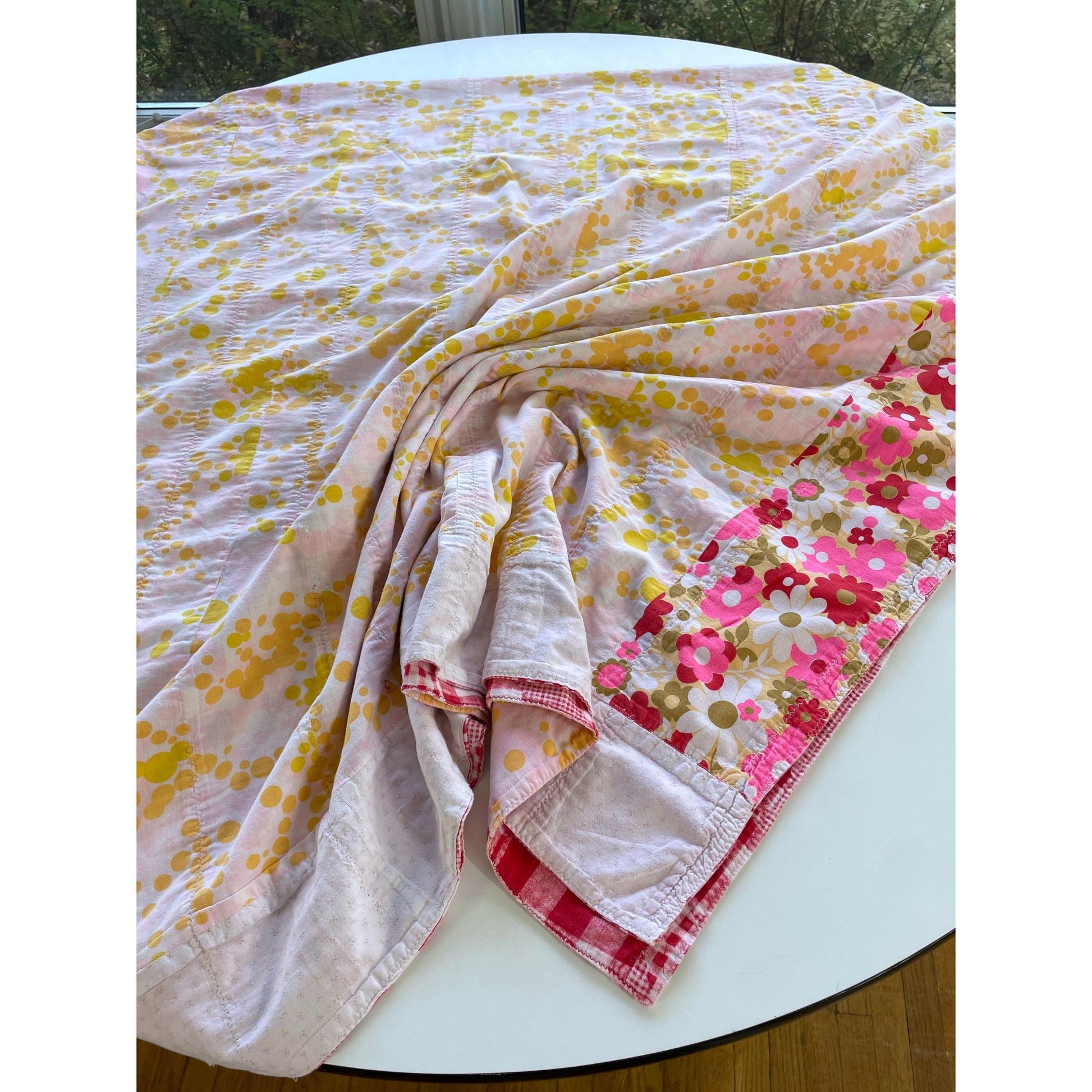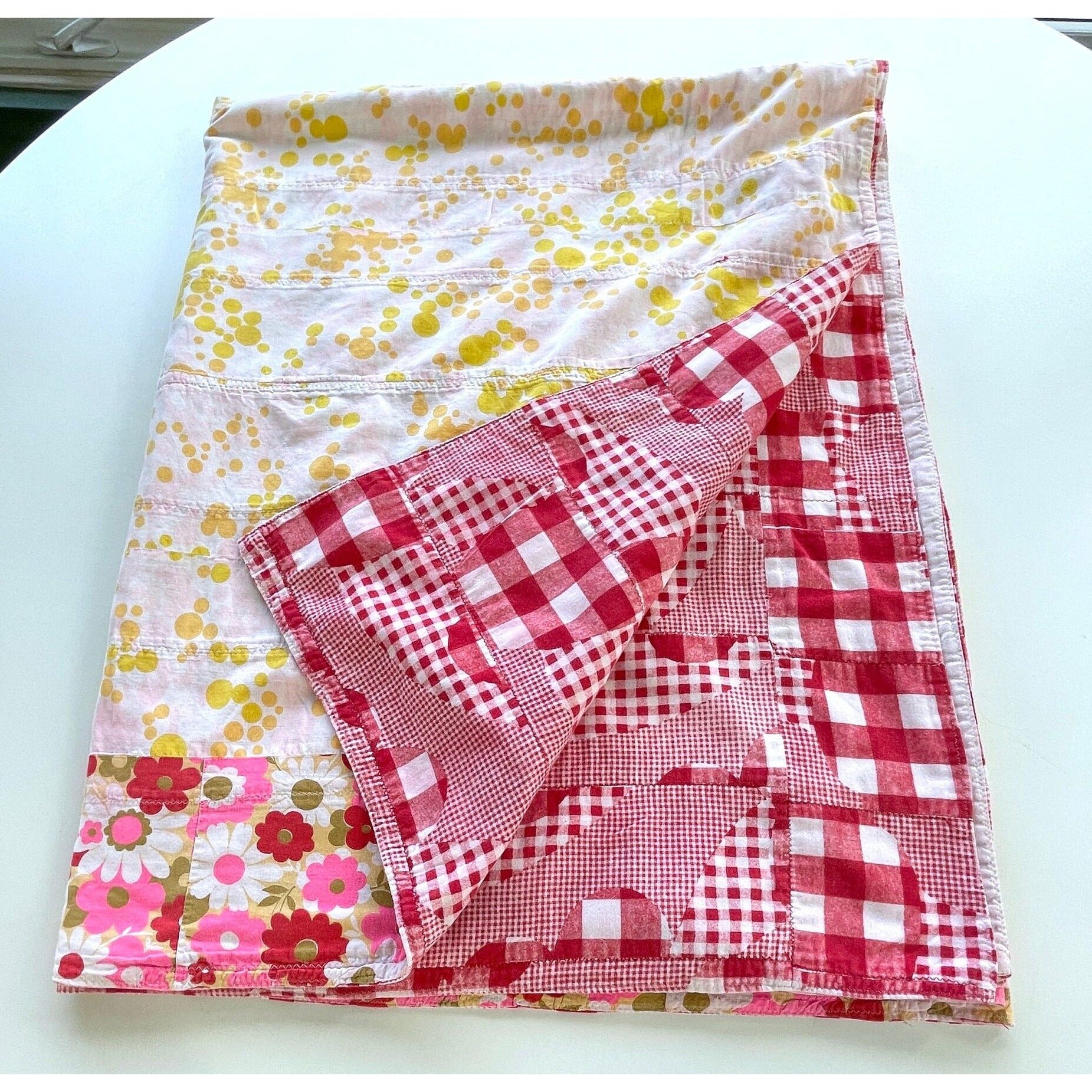 Vintage 70s handmade quilt, twin size