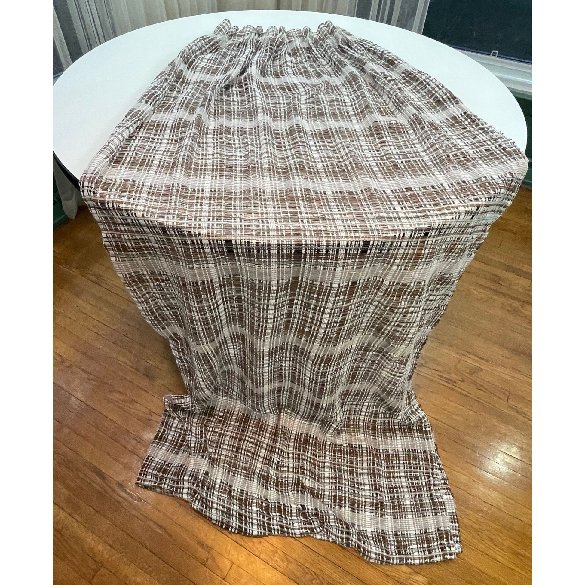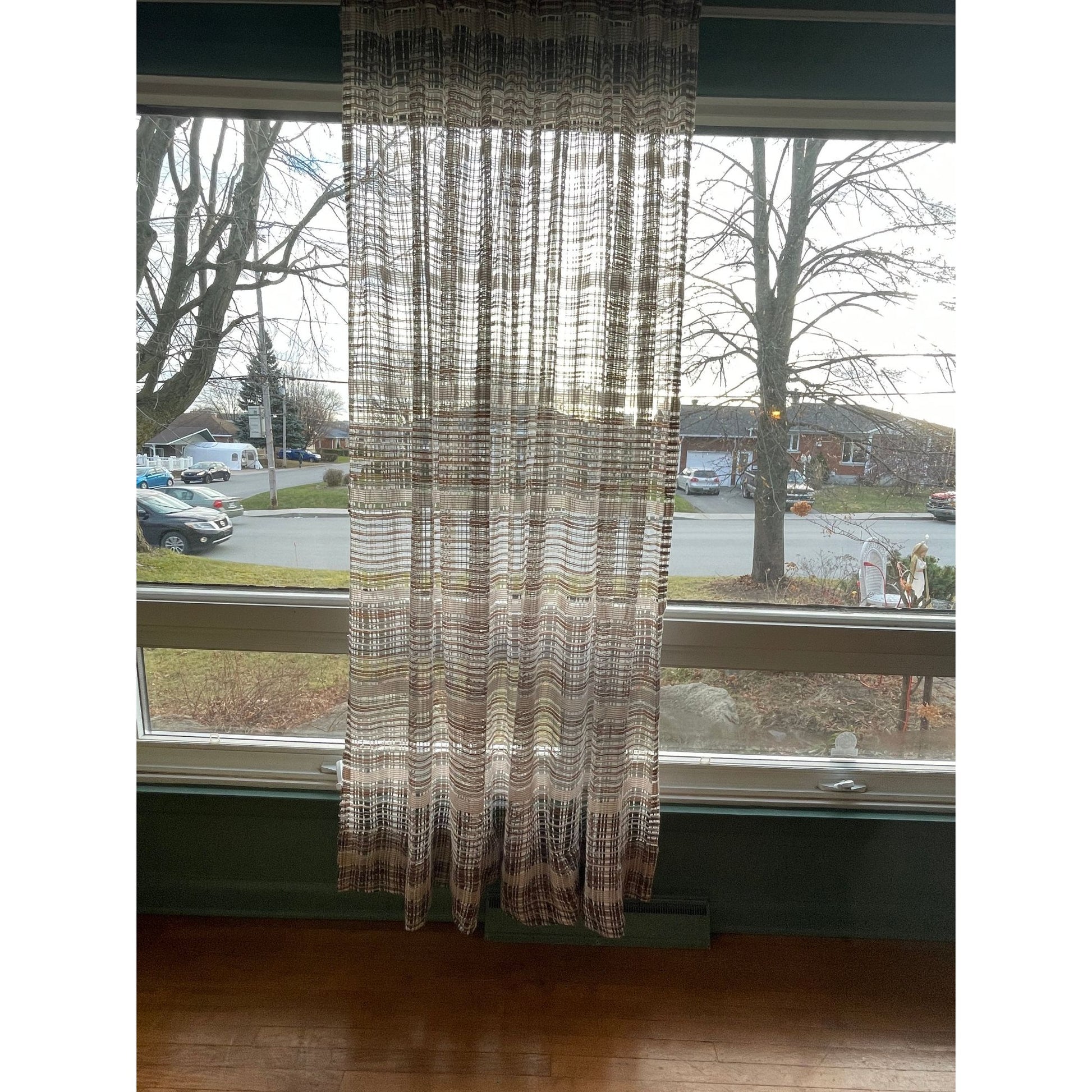 Long and narrow pleated panel, woven mesh in beige and brown, perfect for any narrow window or as a side statement curtain.