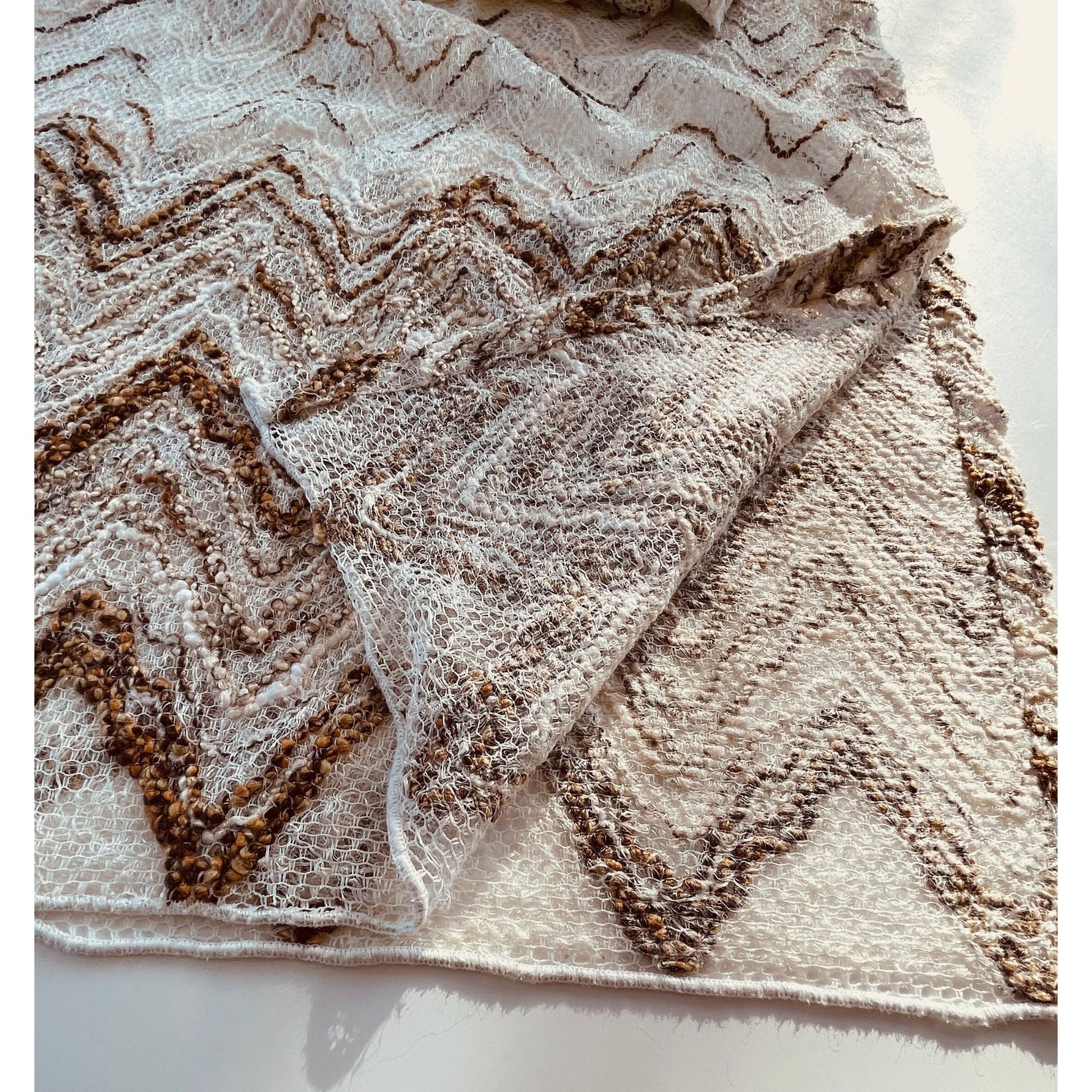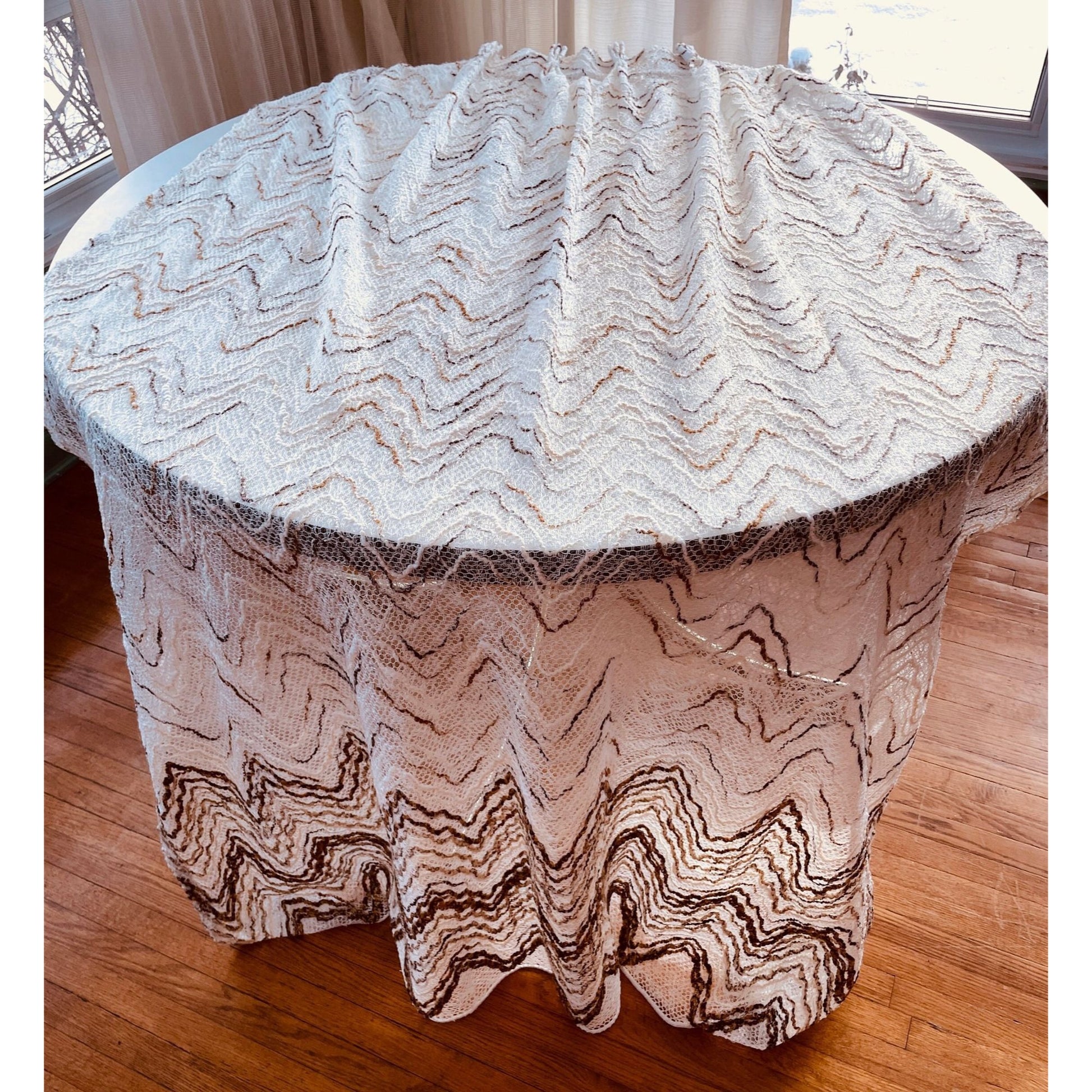 Vintage 70s net woven curtain, tan brown geometric stripes