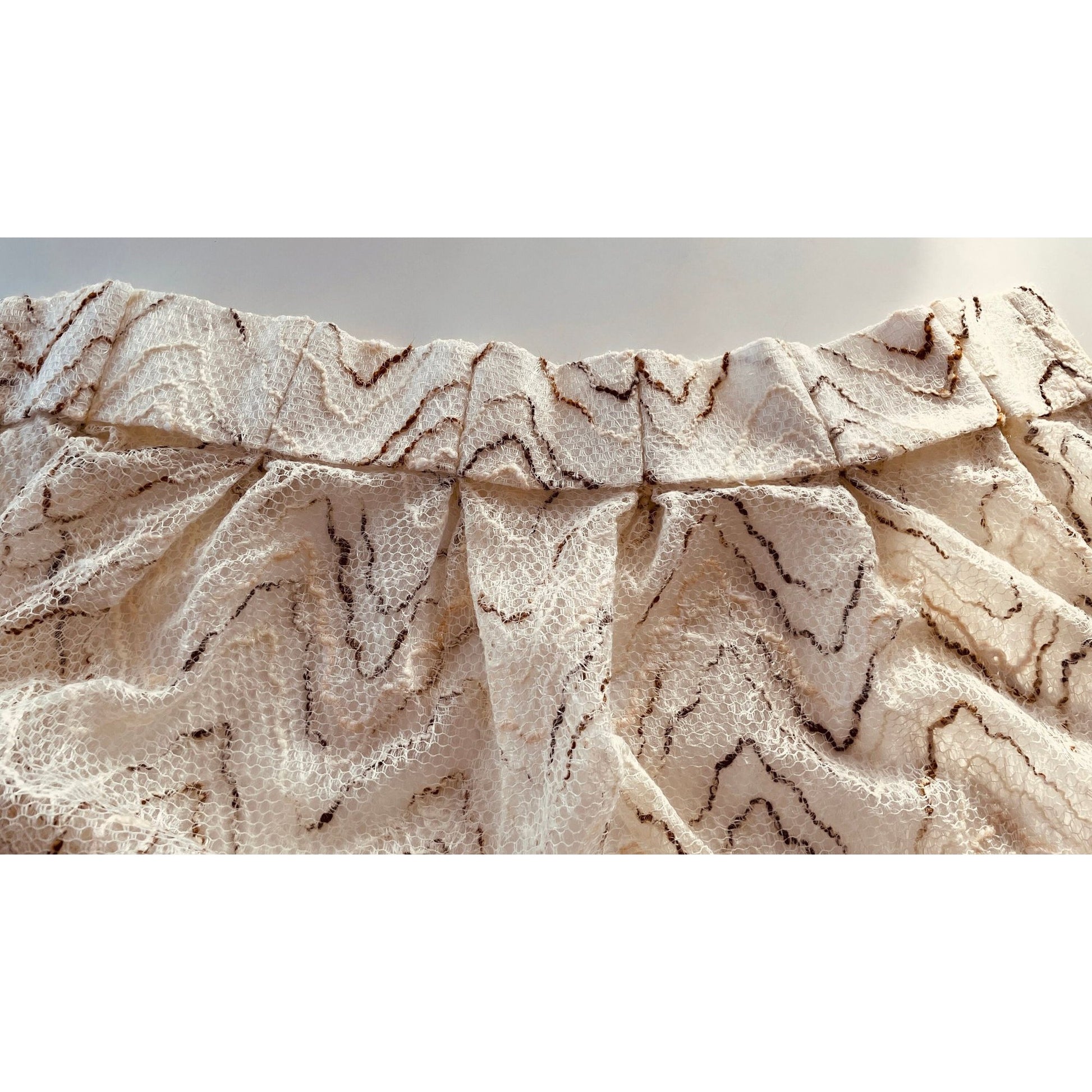 Wide and long pleated panel, cream and brown woven mesh, perfect for a living or dining room window.