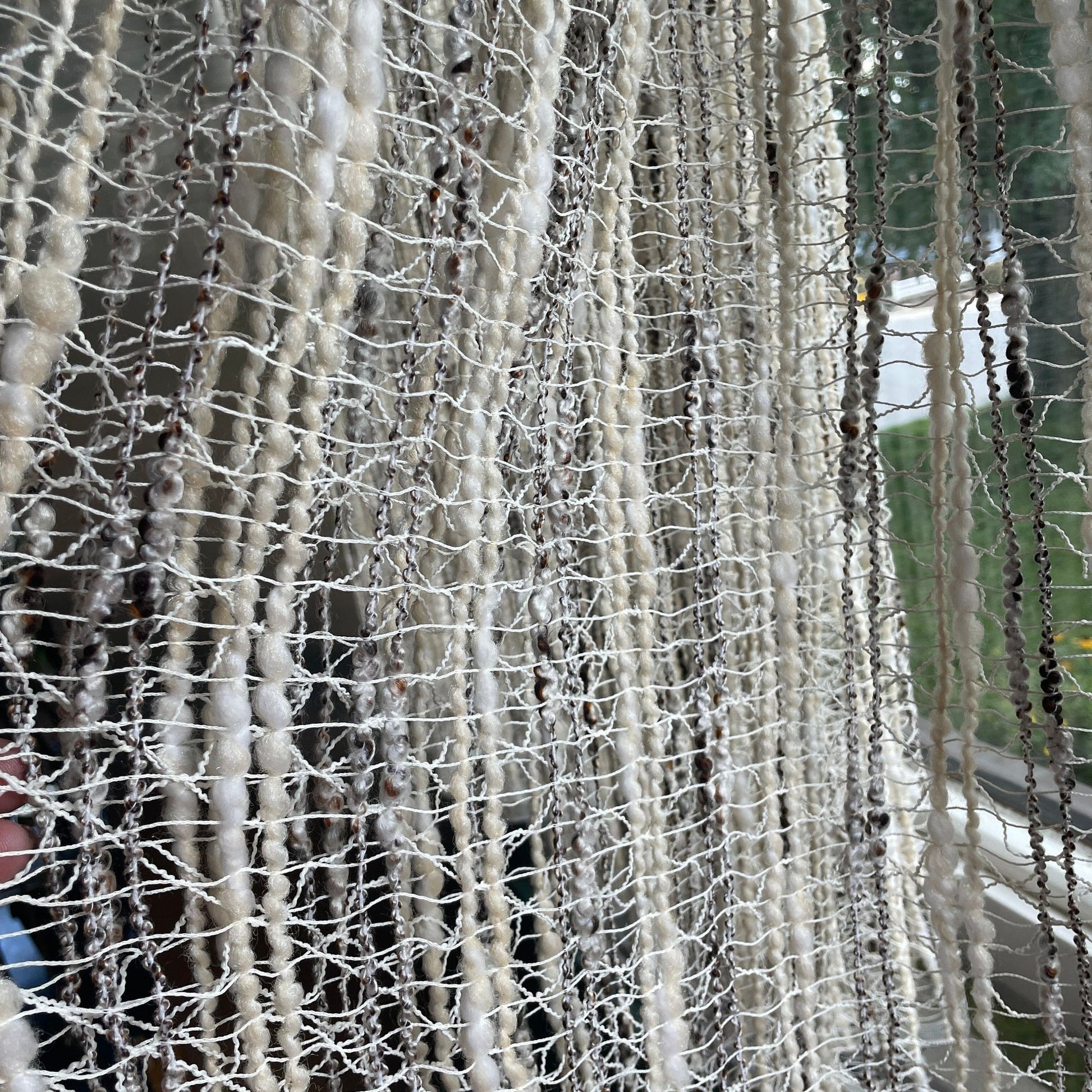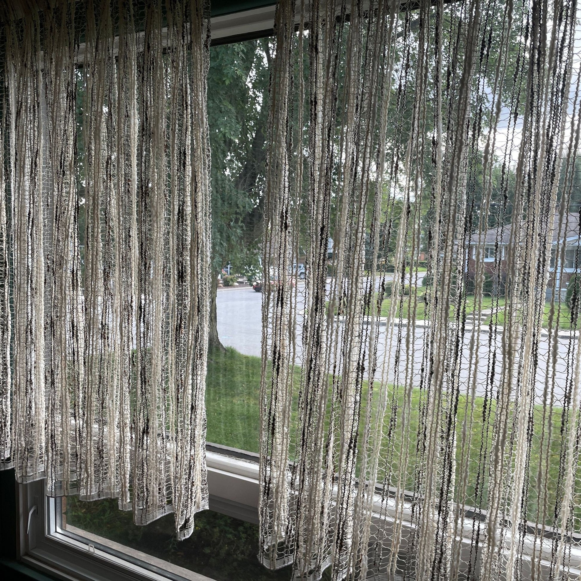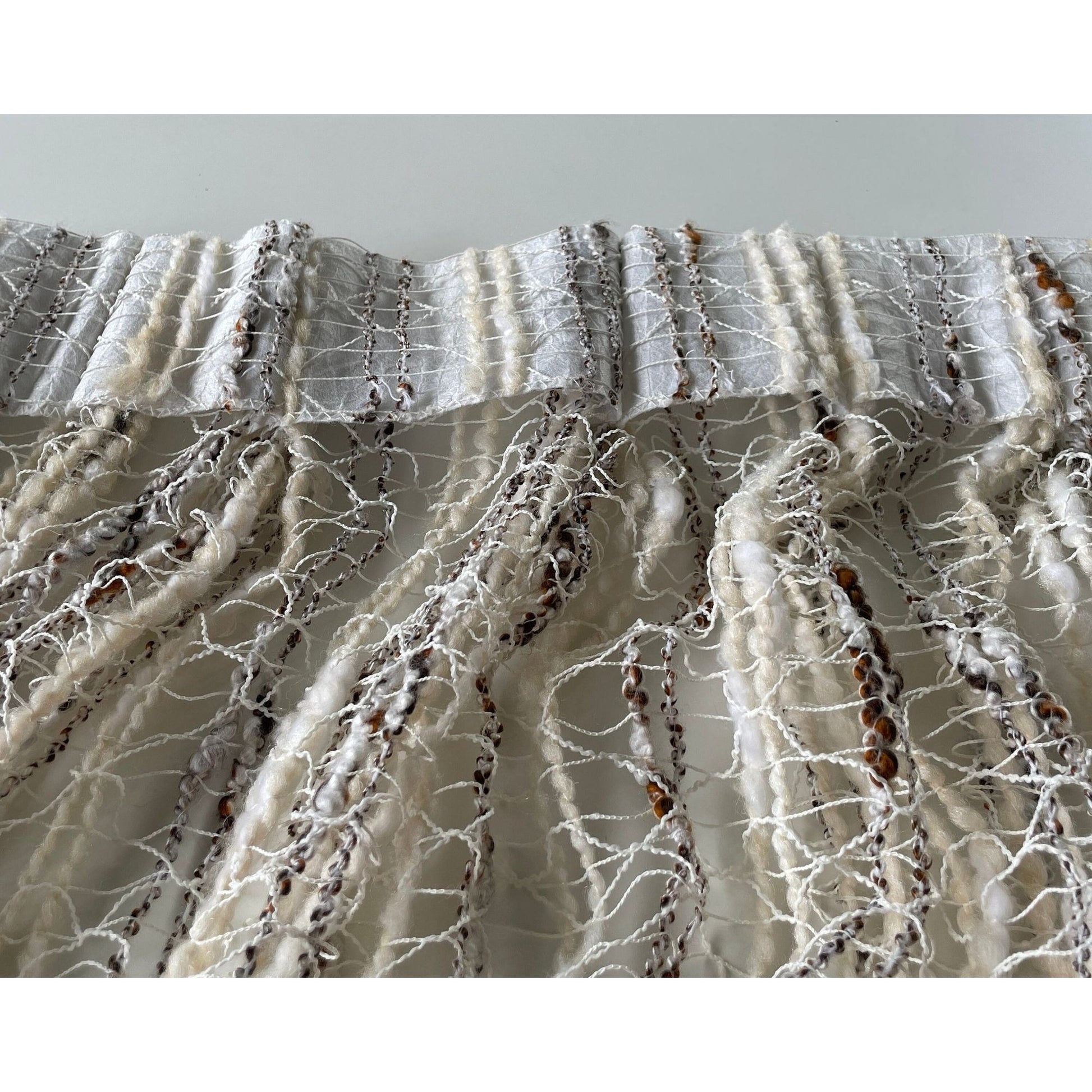 Vintage 70s net woven pleated beige and brown curtains