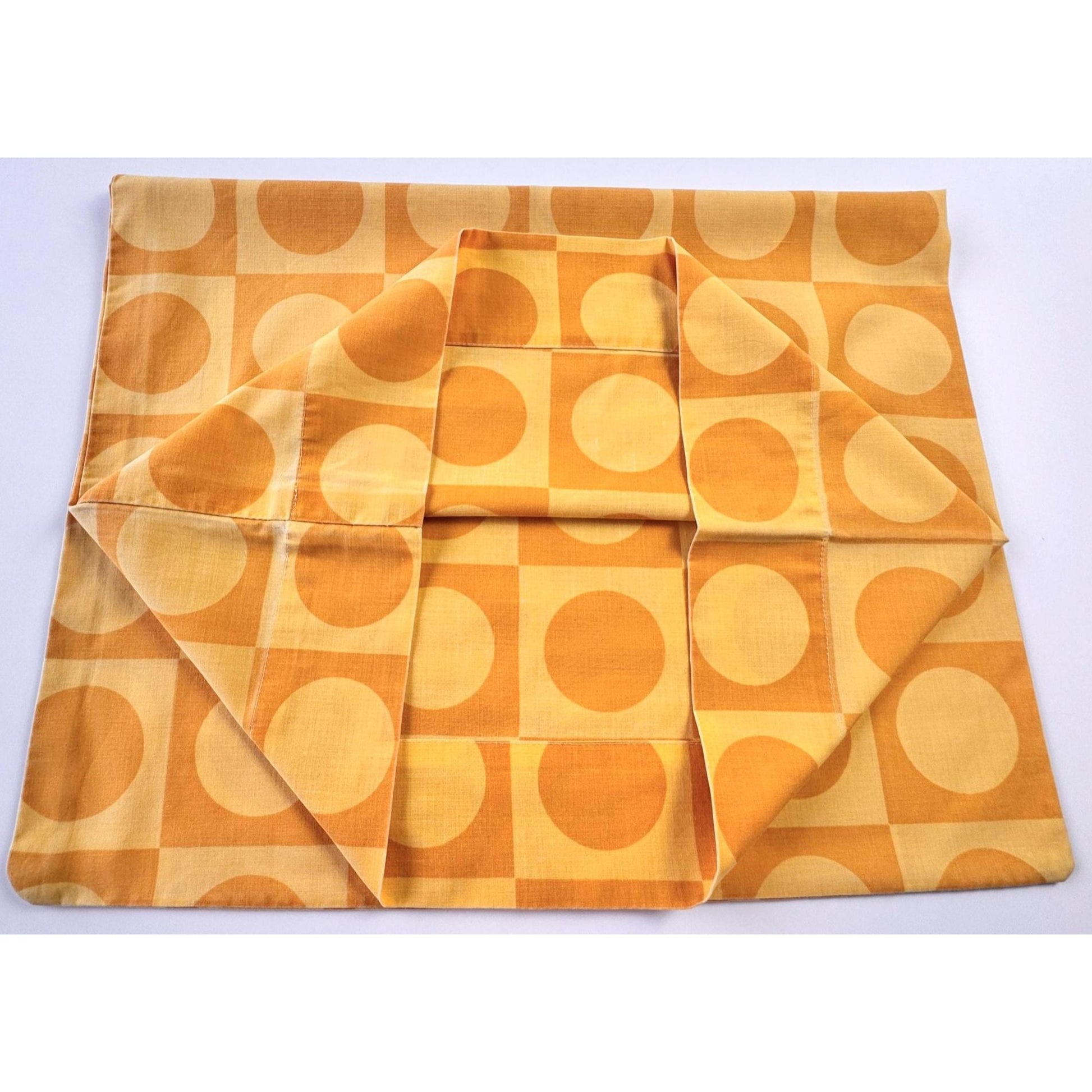 Vintage 70s pillowcase, orange yellow geometric circles, TruPrest Dominion Textile