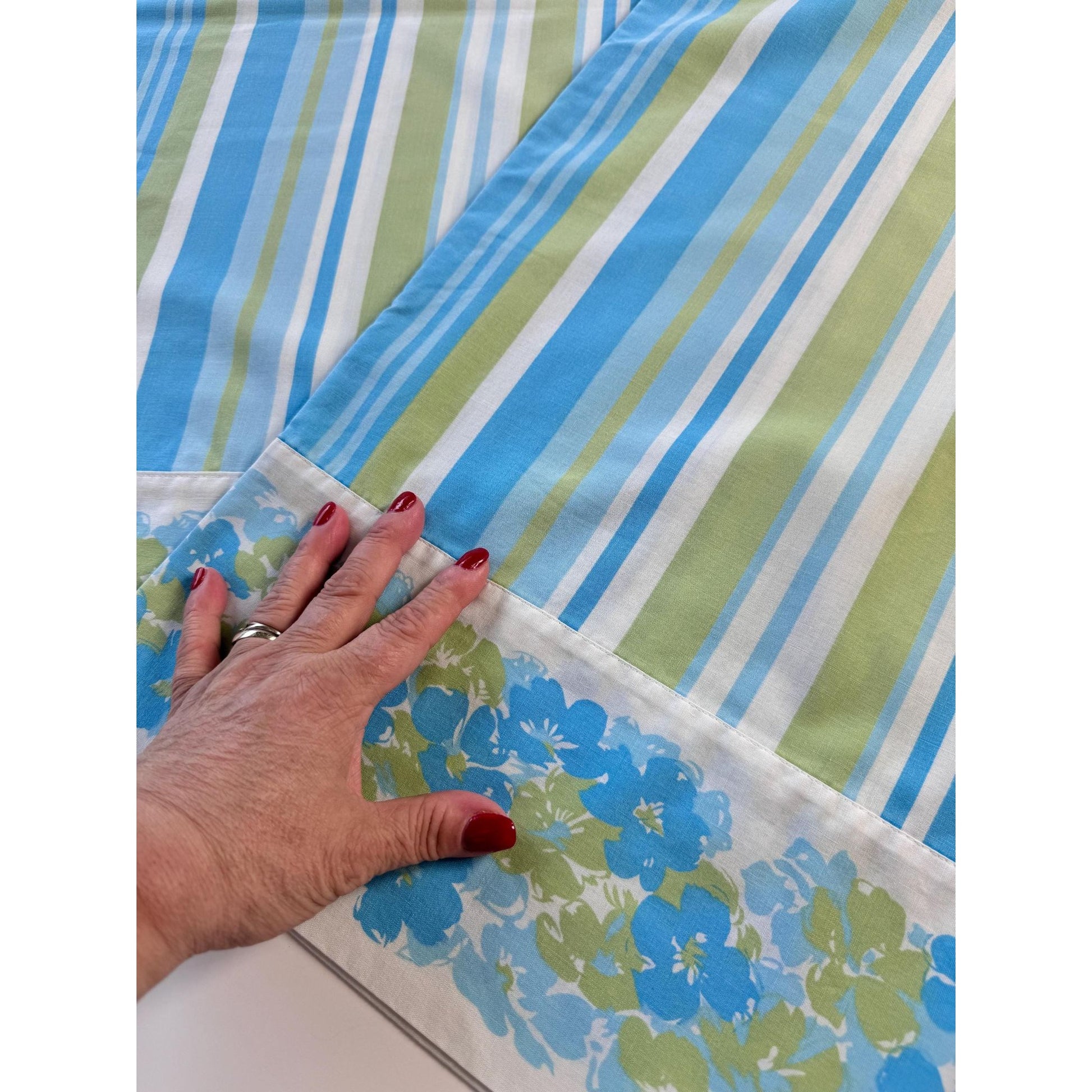 absolutely stunning 70s pillowcases, blue and green flowers and stripes. Price is for the pair.