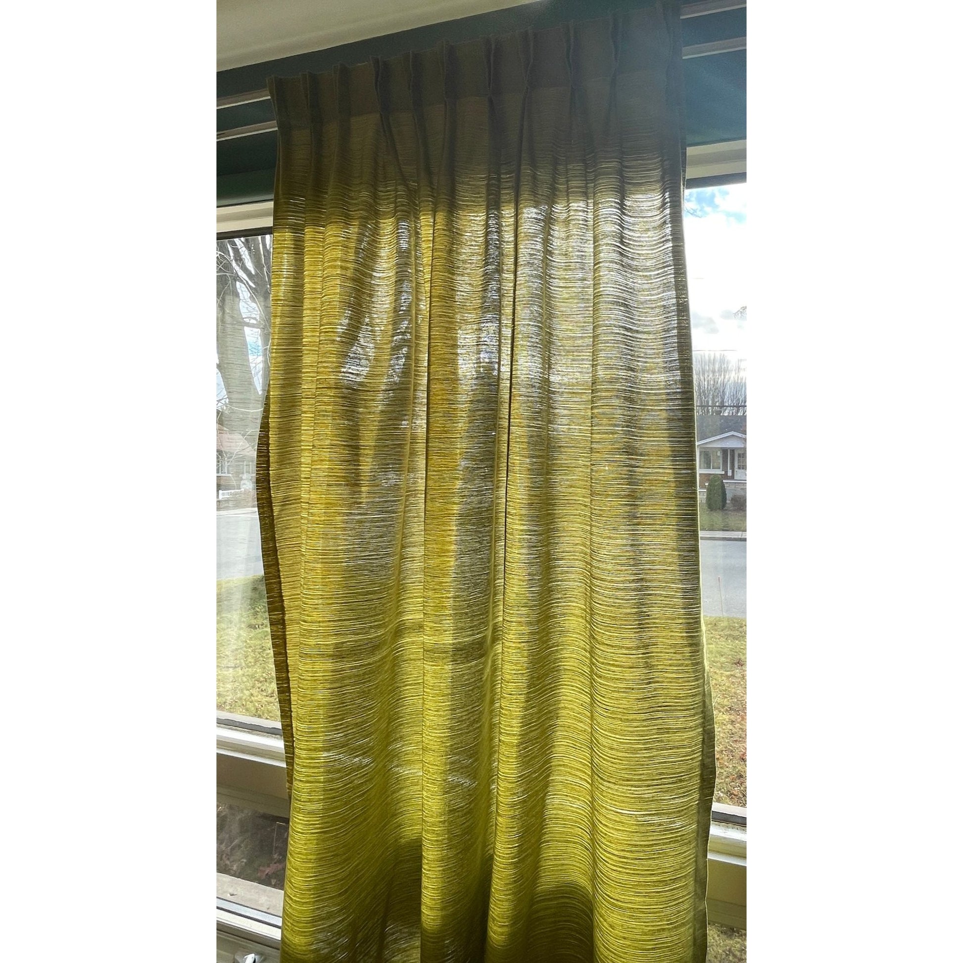 Can be hung using 3" pleating hooks as shown in pictures, not included. can also use single hooks or clips.