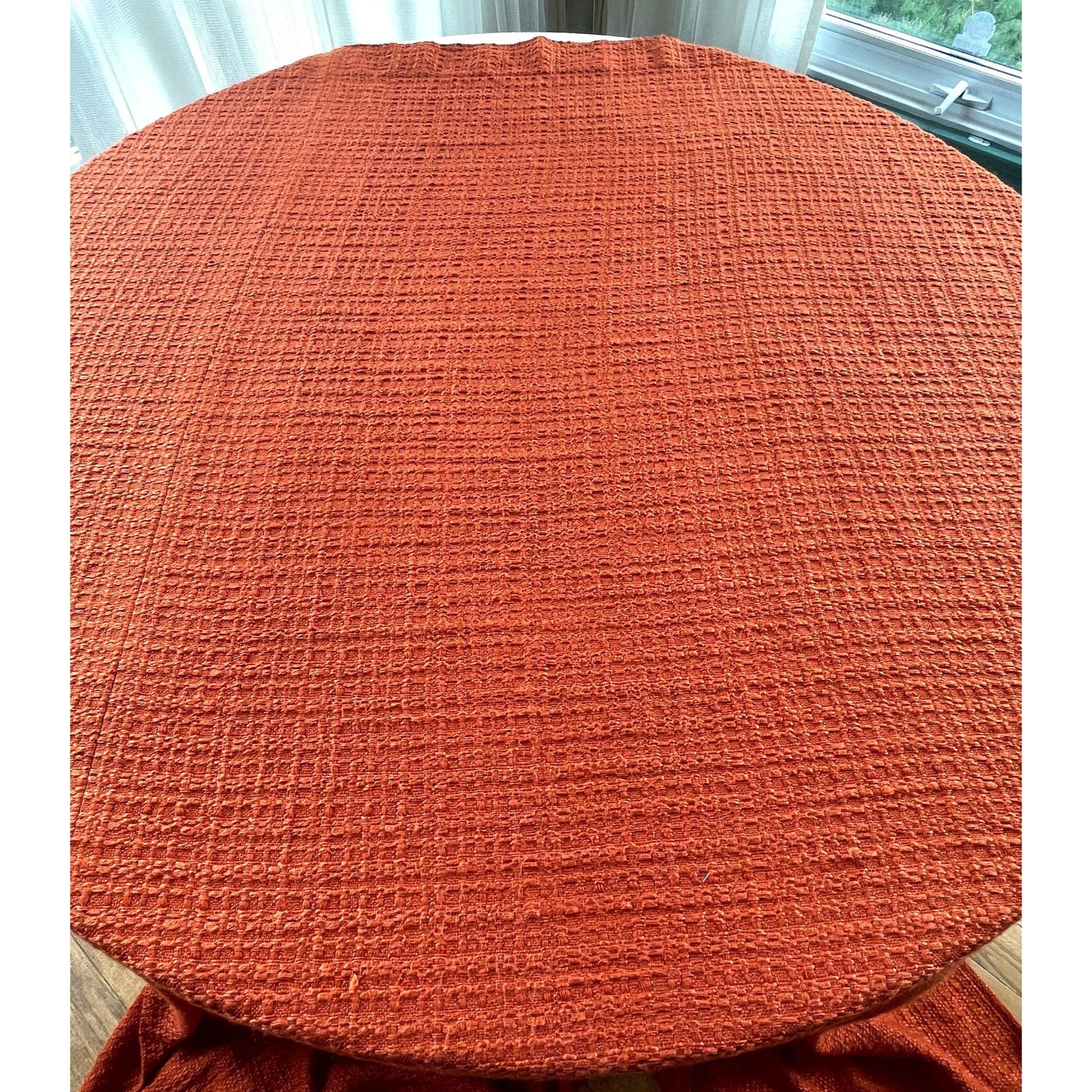 Color is burnt orange / brick red, panels are a thick woven material with very good weight.