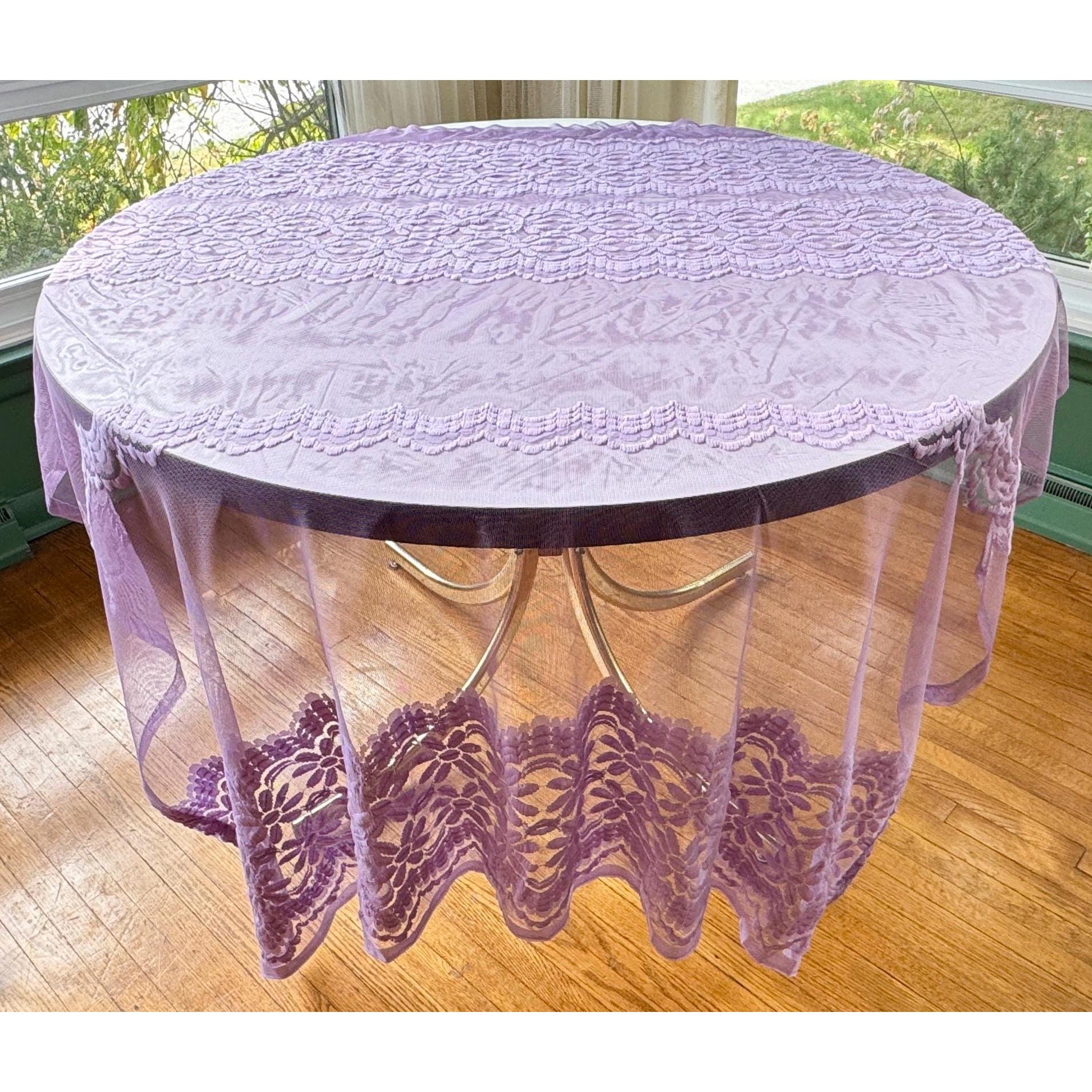 Vintage 70s curtain, purple/lavender, fuzzy floral mesh panel
