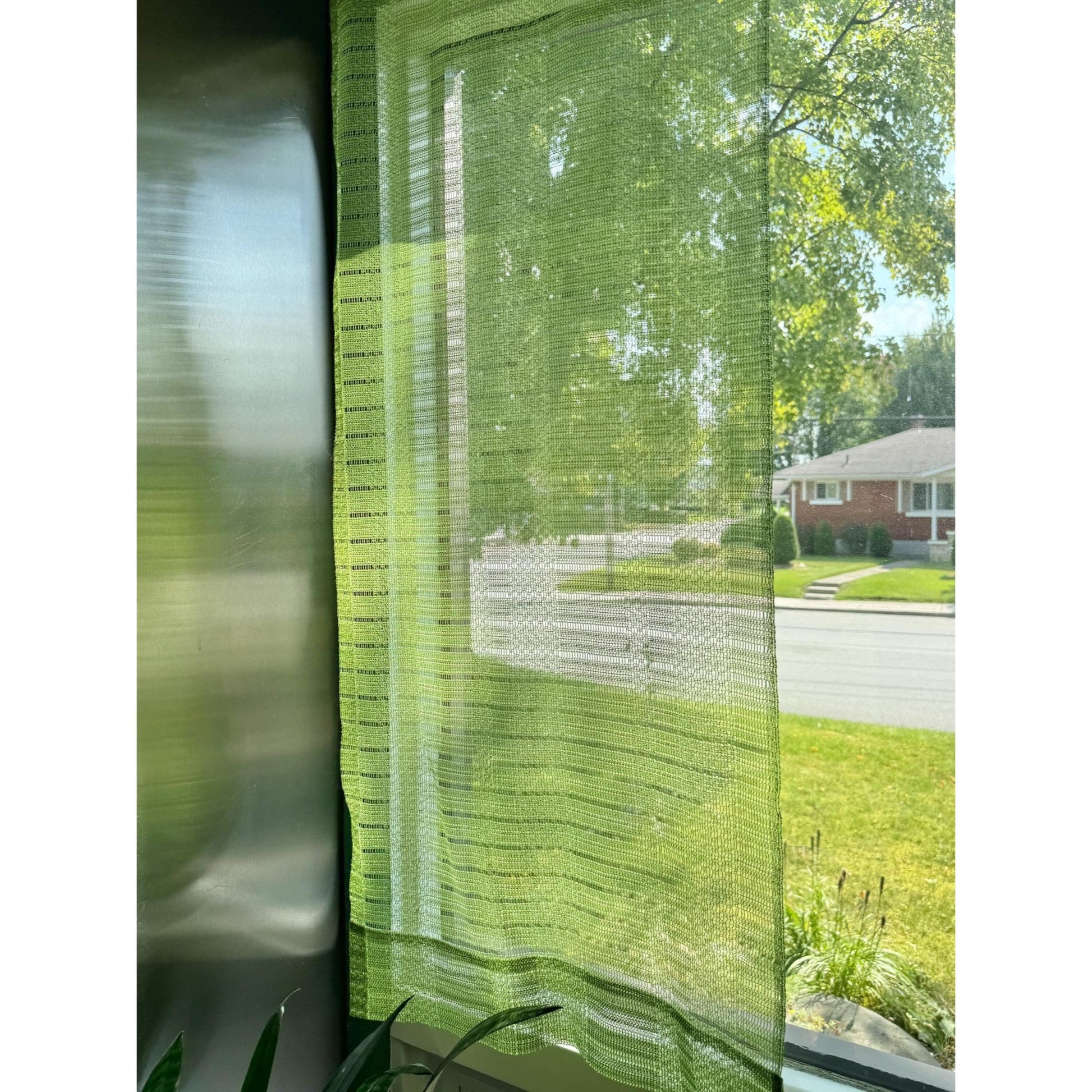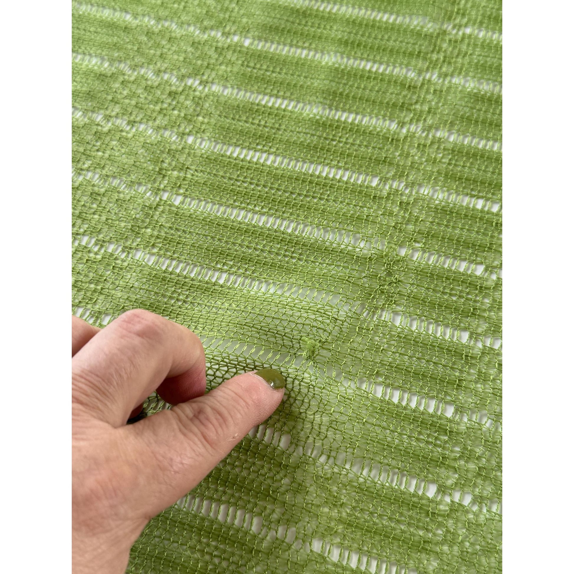 Vintage net curtain, avocado green, with tieback. Price is for one panel, only one is available.