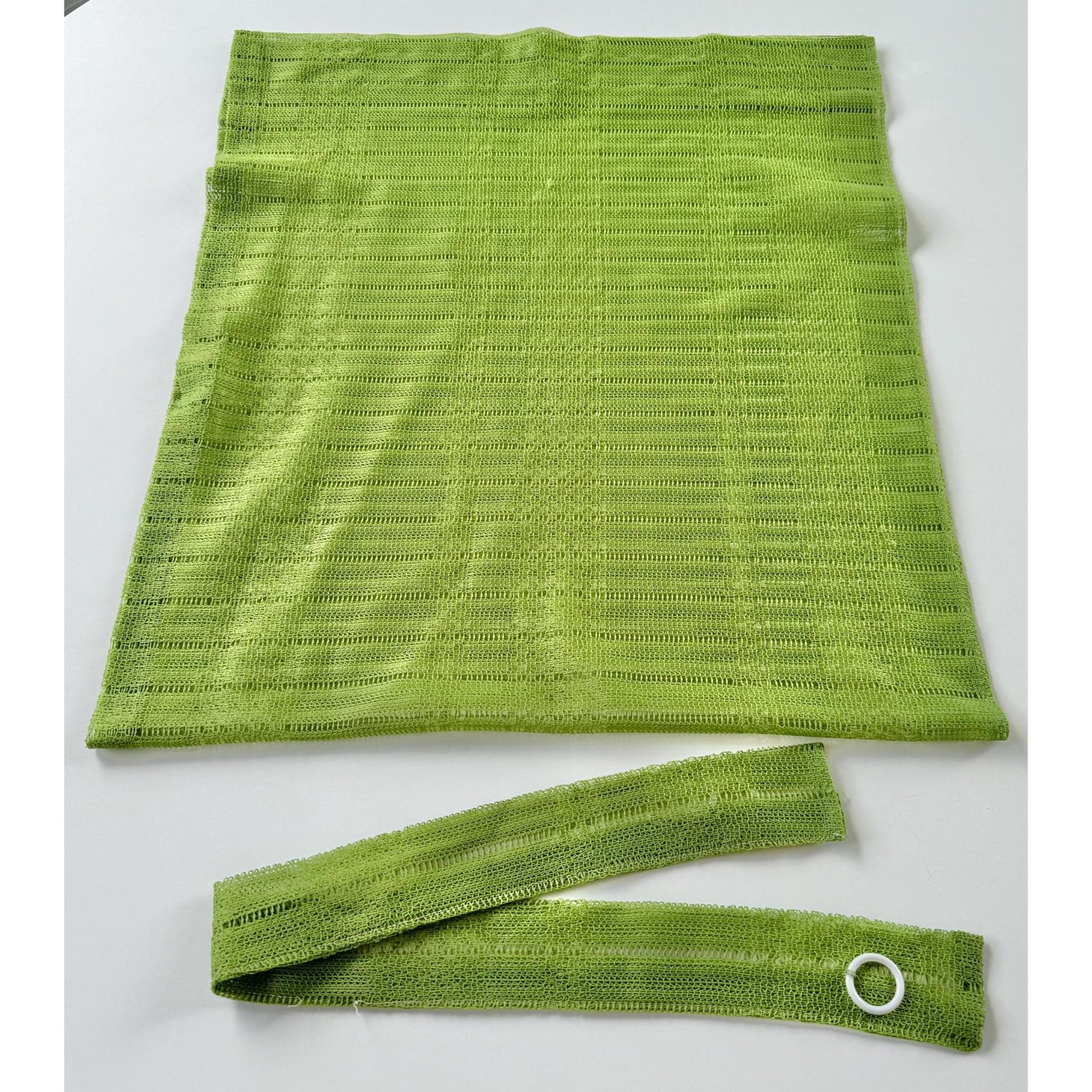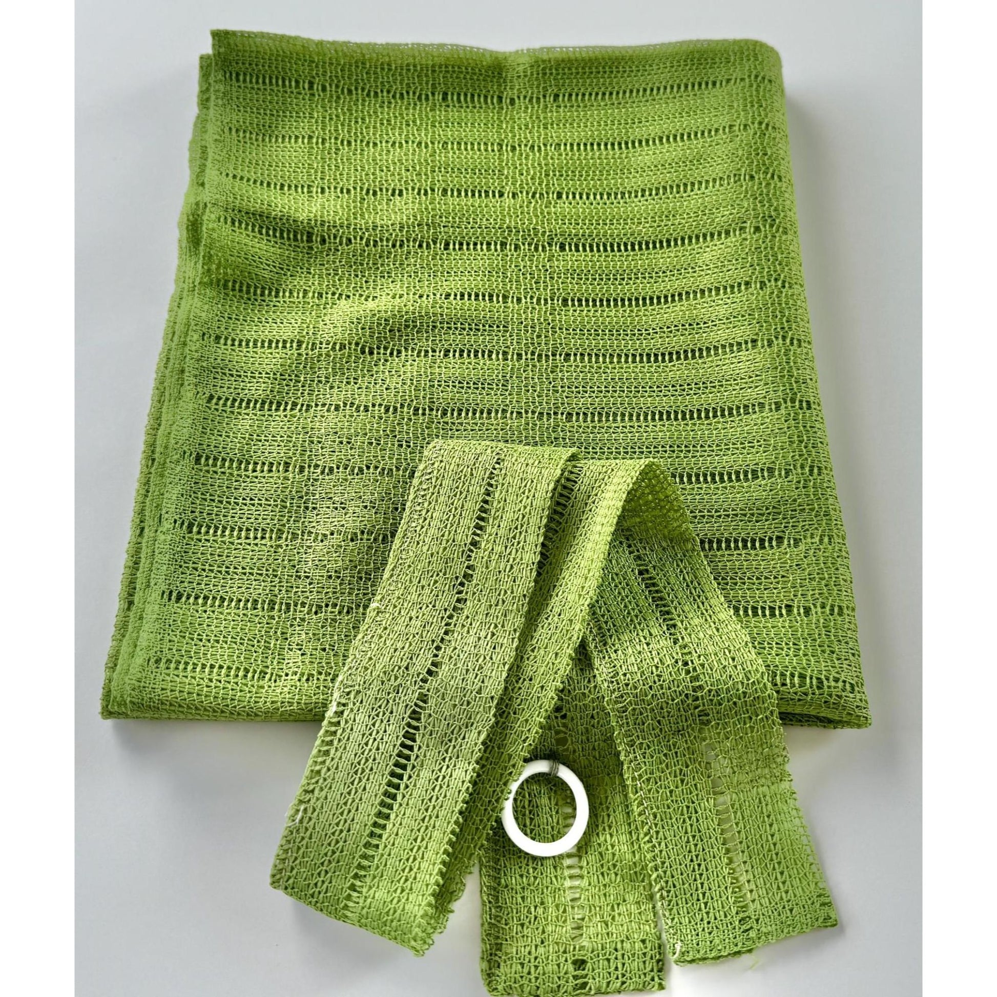 Vintage 70s curtain, avocado green mesh panel and tieback