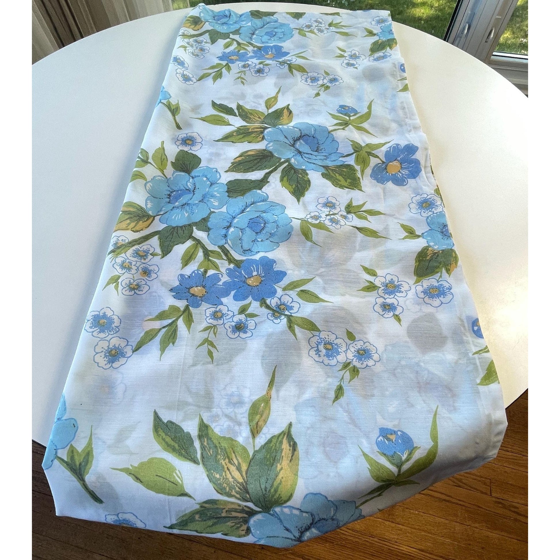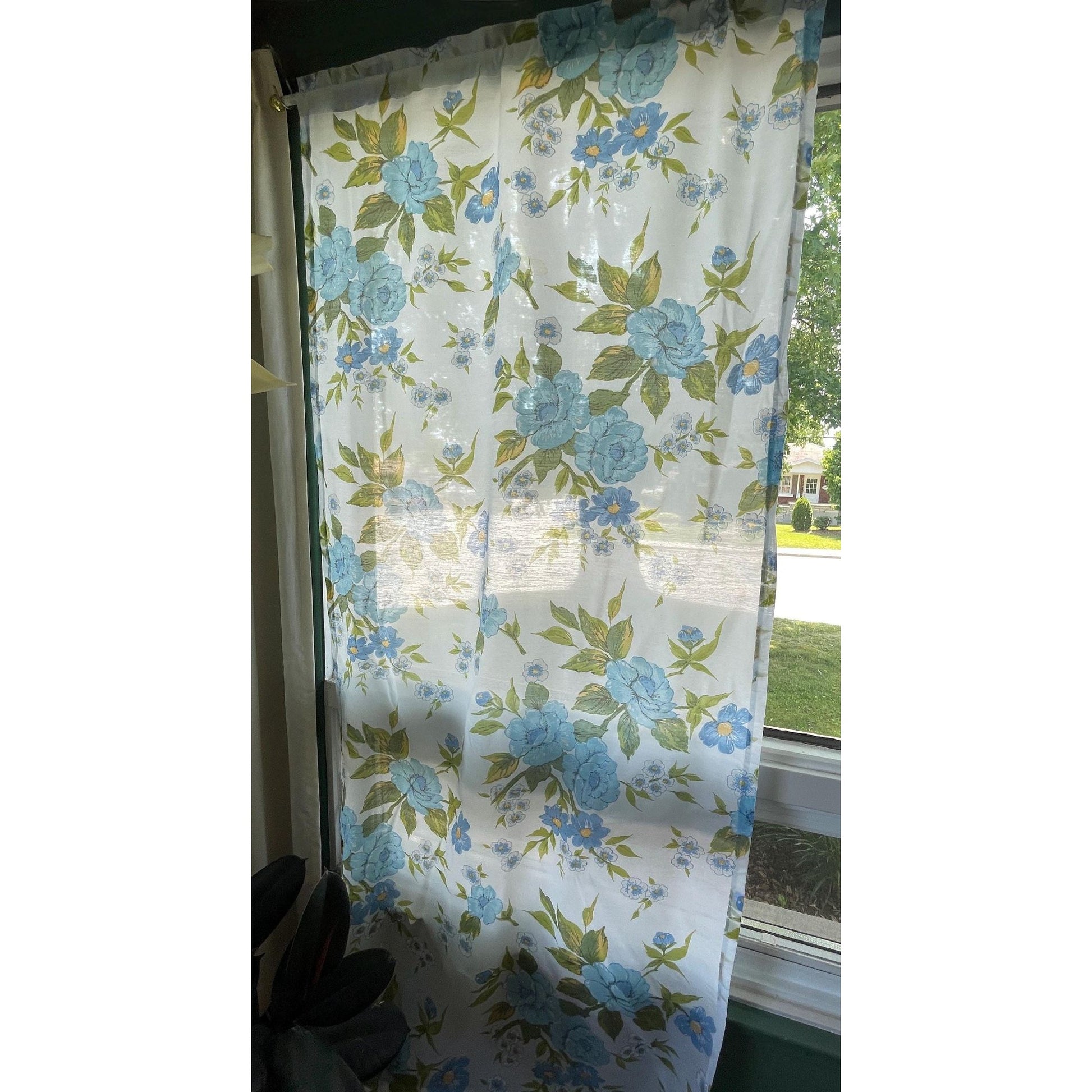 Vintage 70s curtain, large blue flowers and leaves, sheer panel