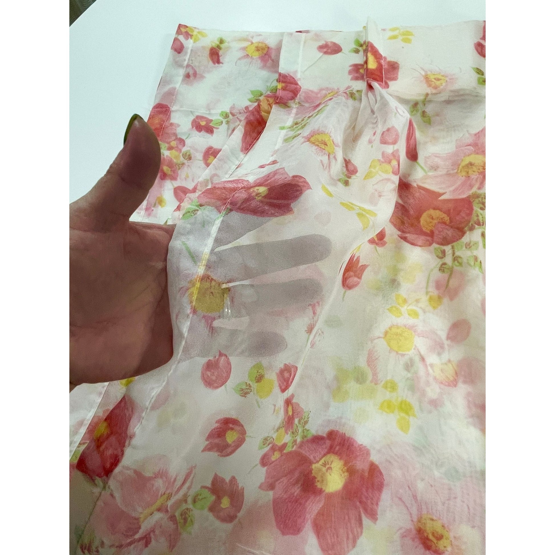 delicate yet bold flower pattern, in pink yellow with green leaves. It is unlined, with a nice sheer. perfect for a short and narrow window.