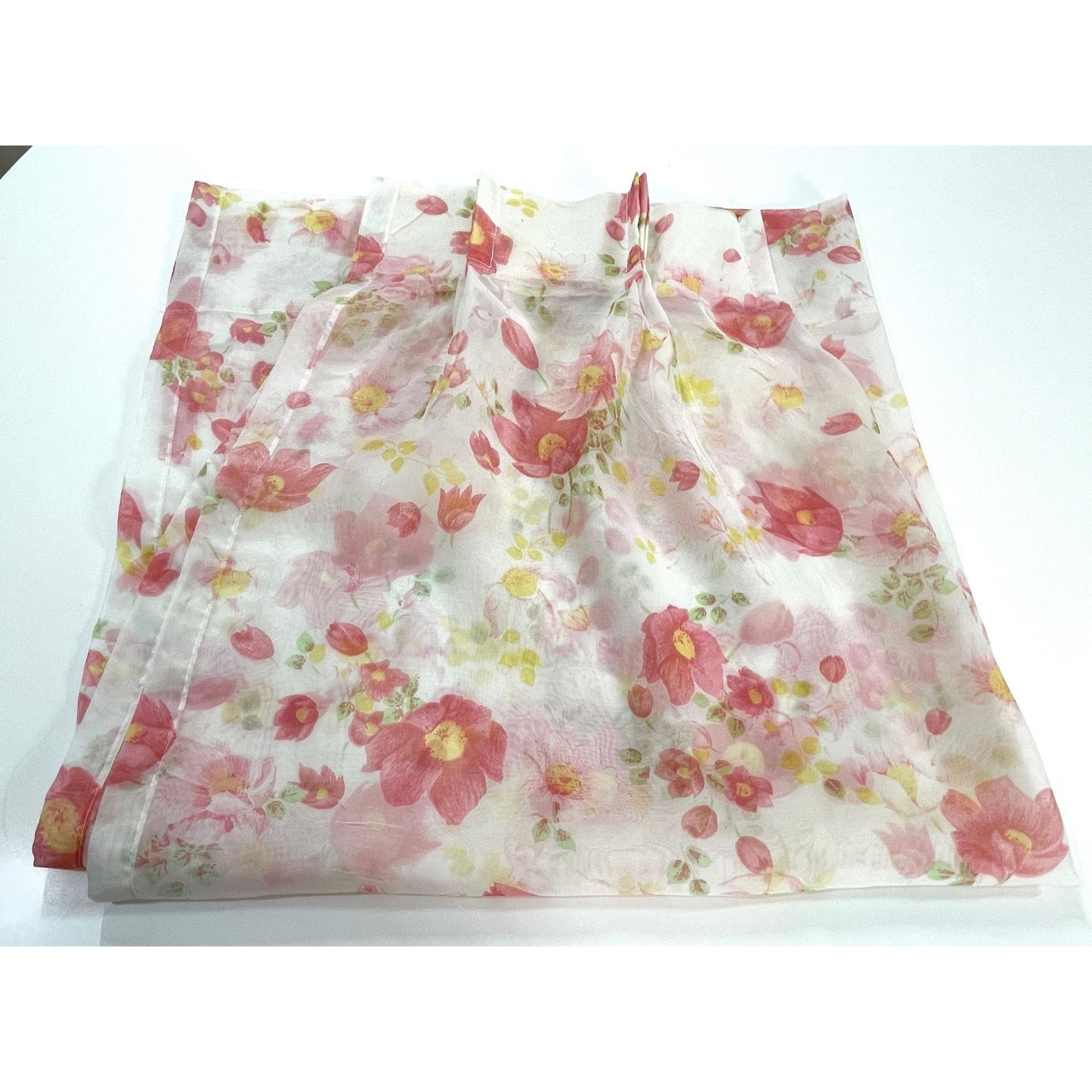 Vintage 70s pleated curtain, pink floral, sheer panel