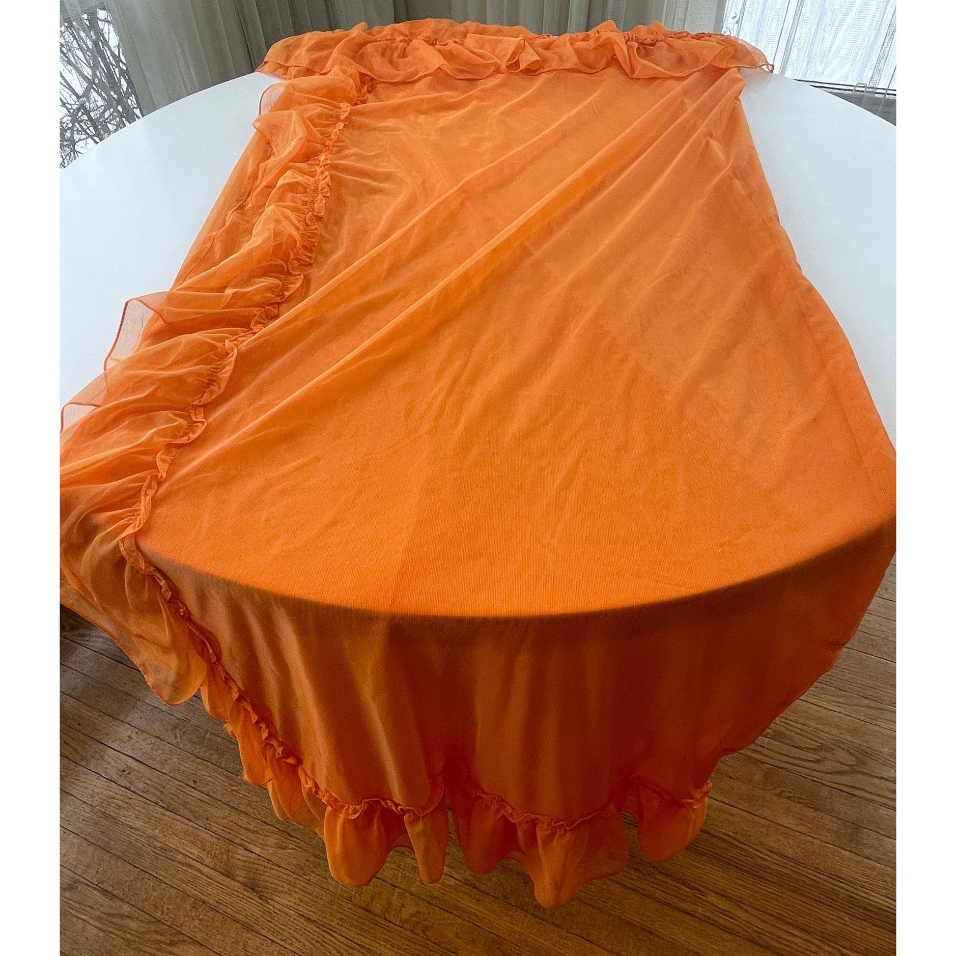 Lovely 70s orange curtains panels, ruffled at the top, side and bottom, sold as a pair or a single panel, different sizes.