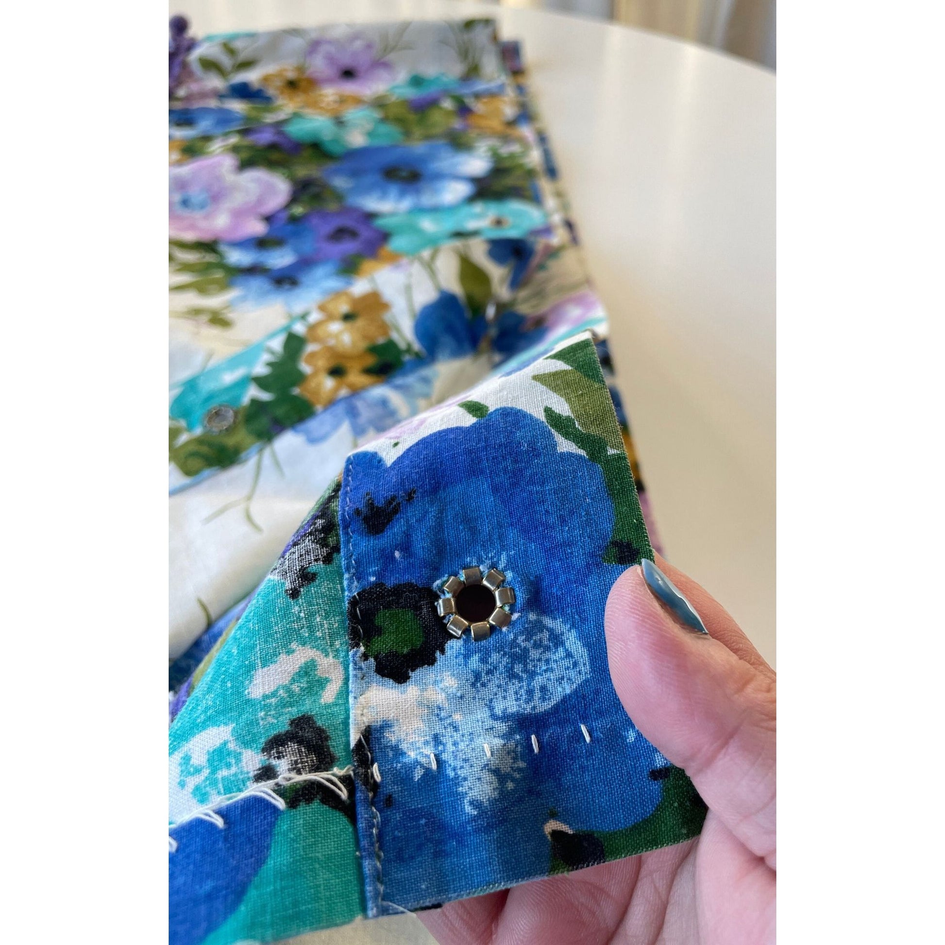 top has a holes and grommets for curtains hooks, line with plastic.