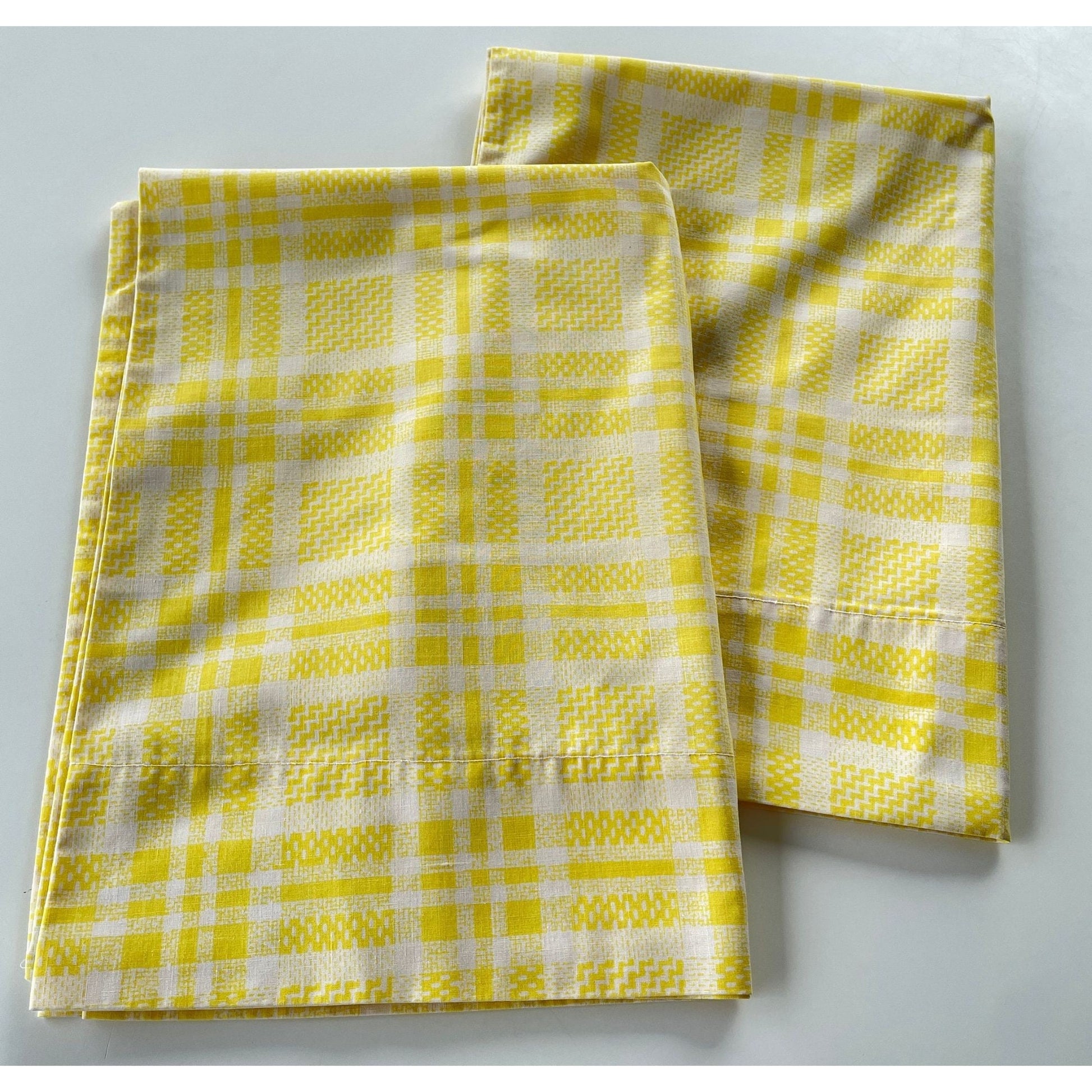 lovely 70s pillowcases set, yellow and white plaid pattern. Price is for the pair.
