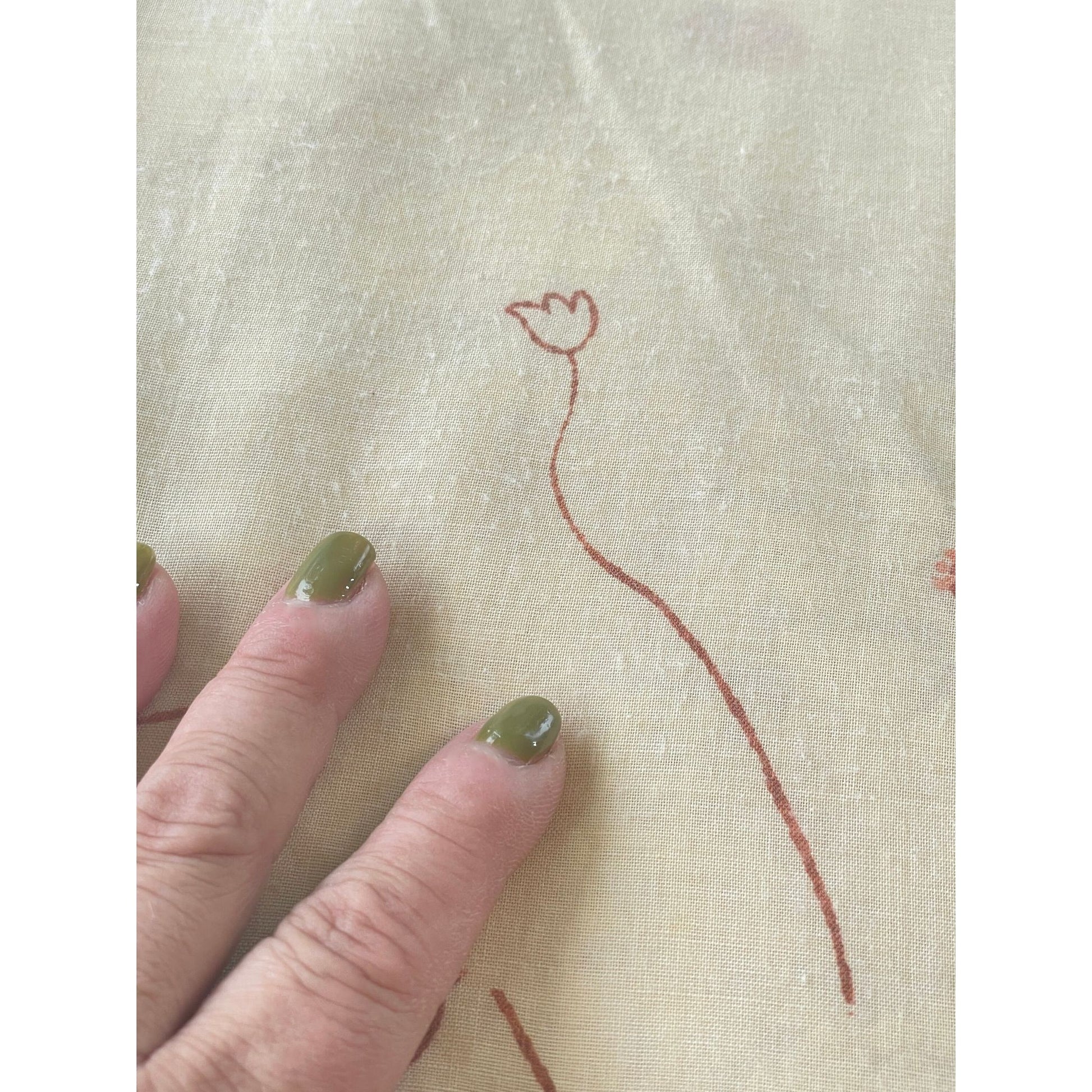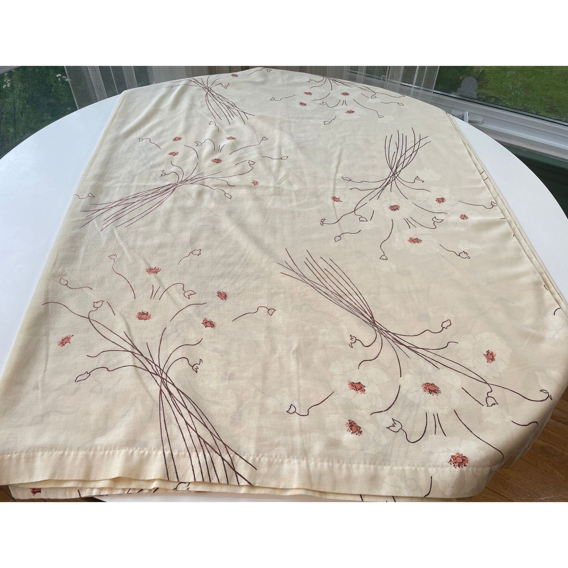 Vintage 80s flat sheet, beige brown orange flowers, twin size