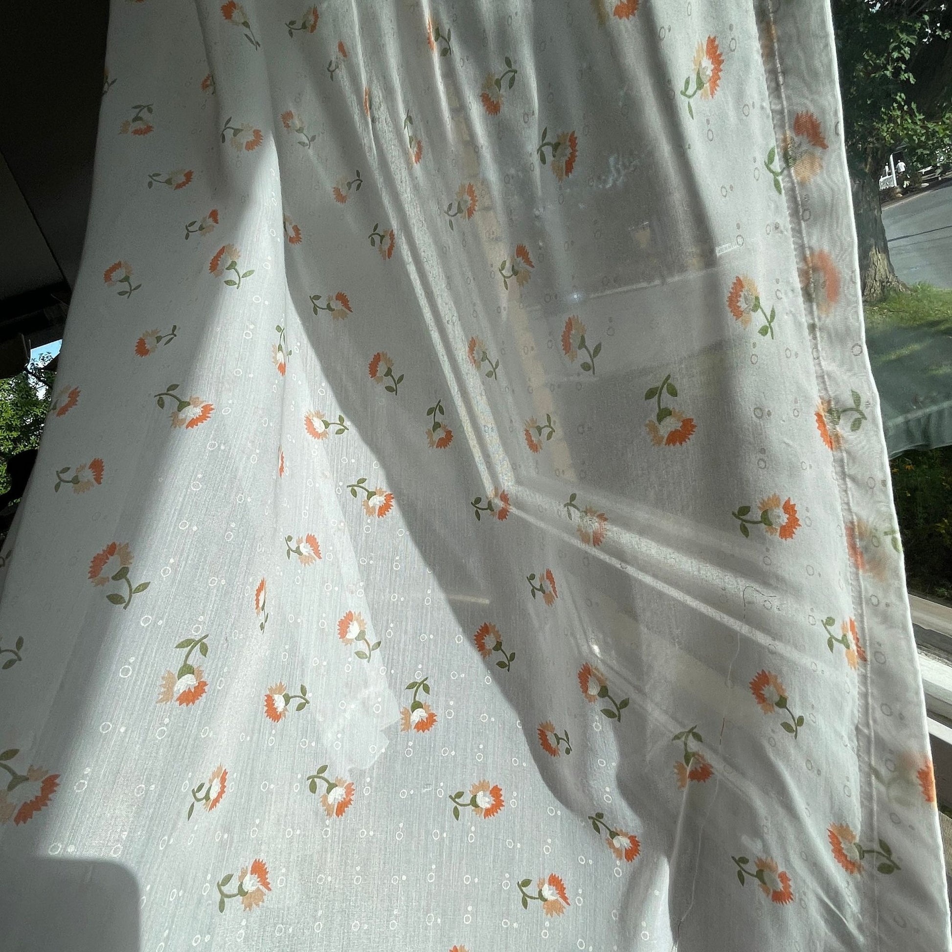 Vintage 80s curtain, sheer green yellow floral, single panel