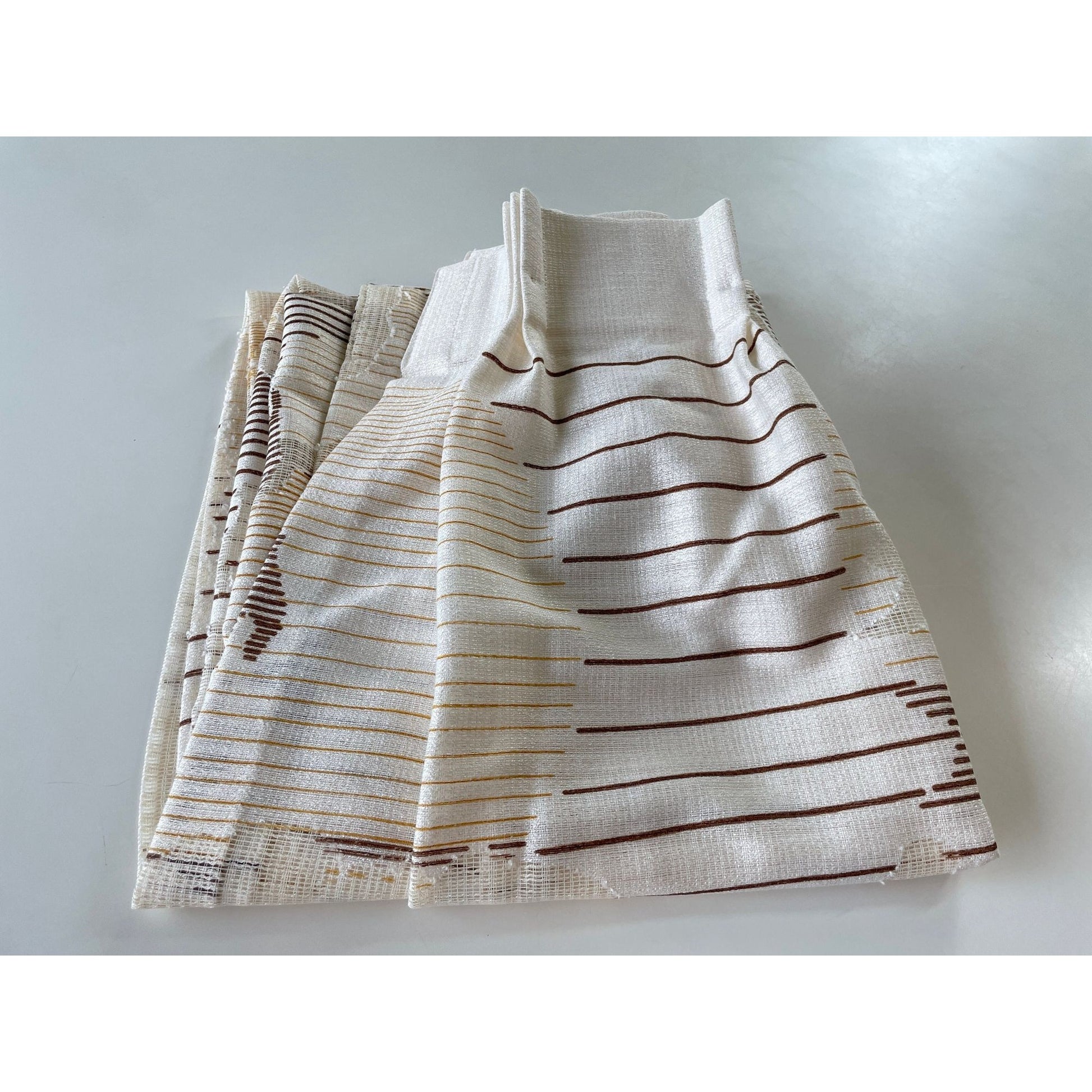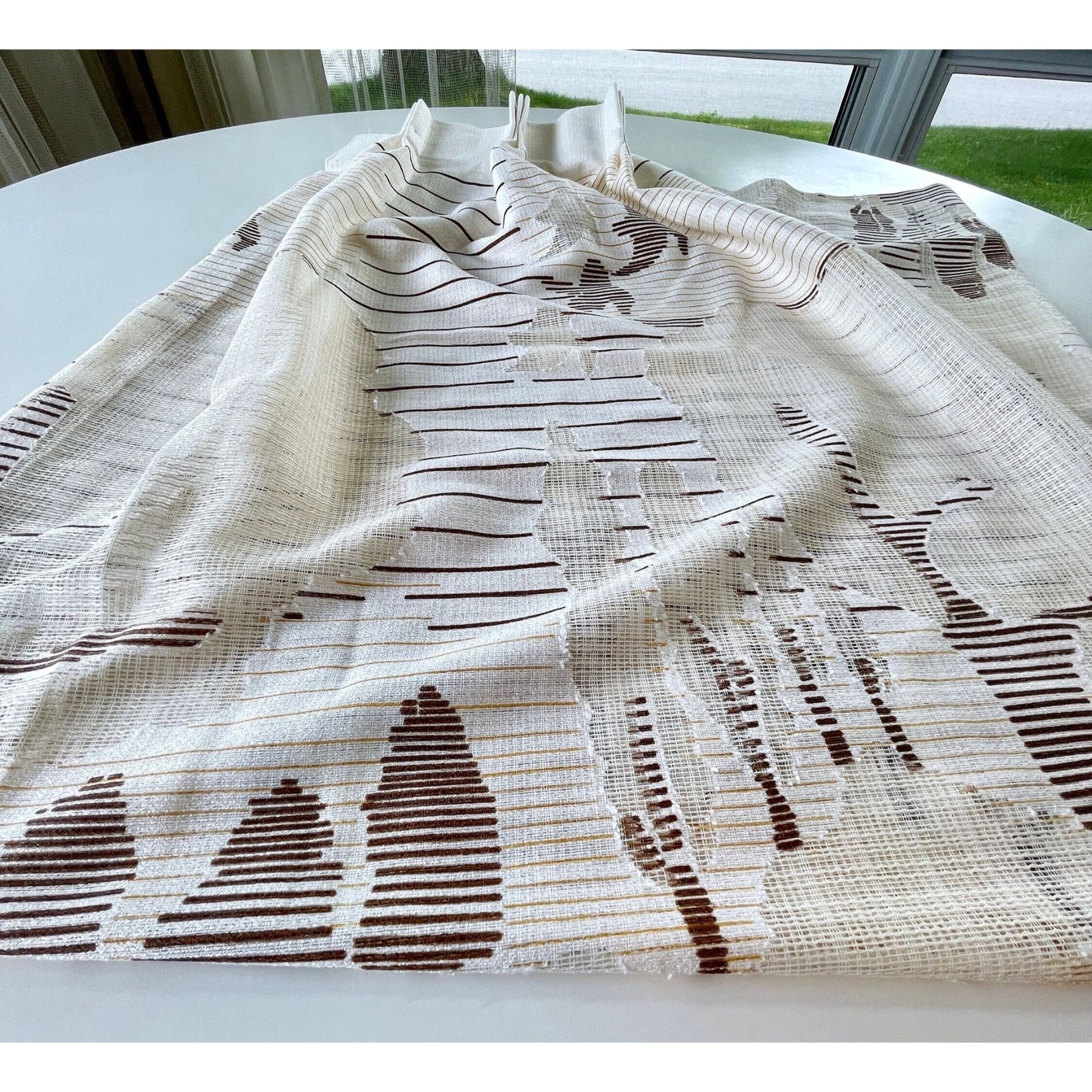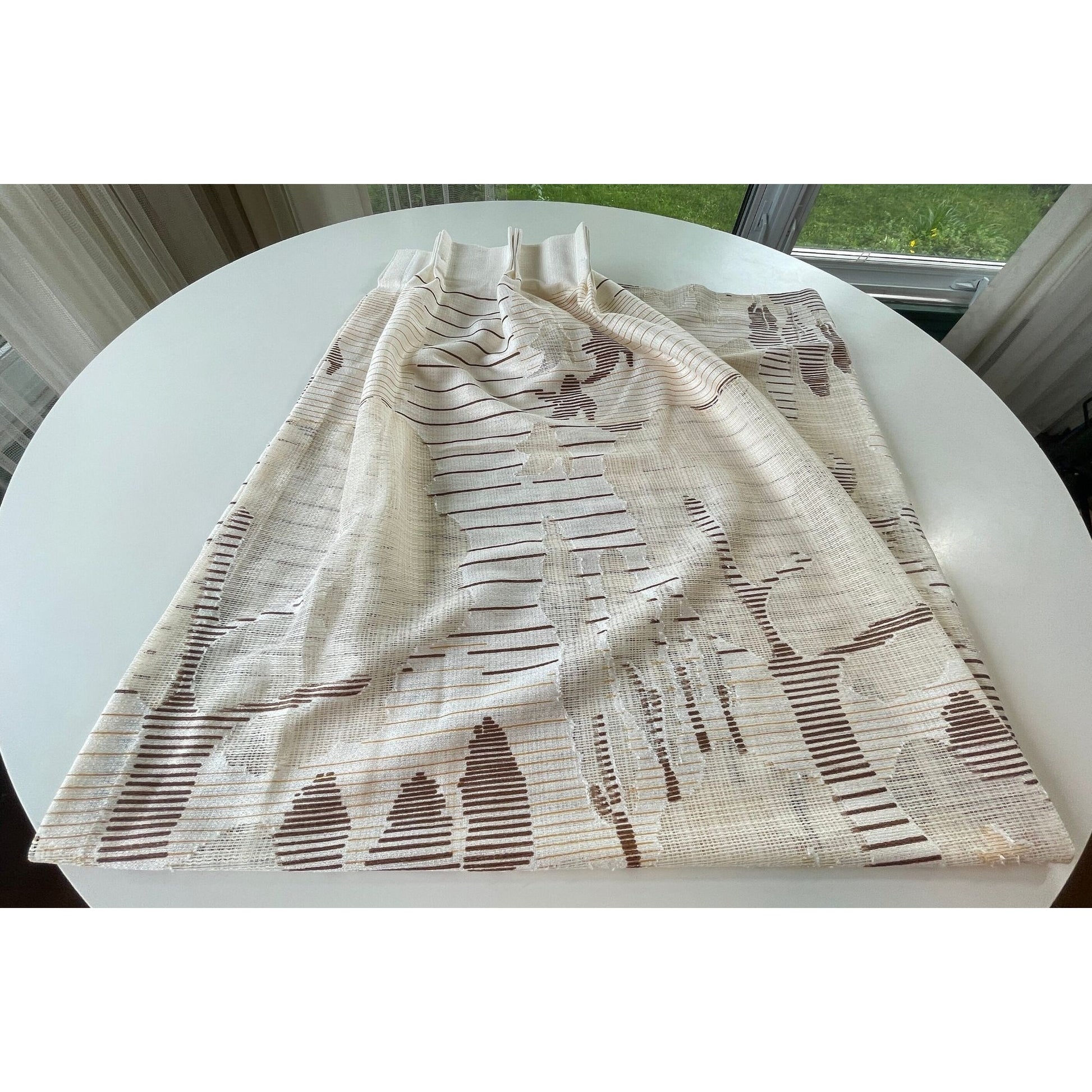 Vintage 80s pleated curtain, beige and brown artistic scenery, single panel