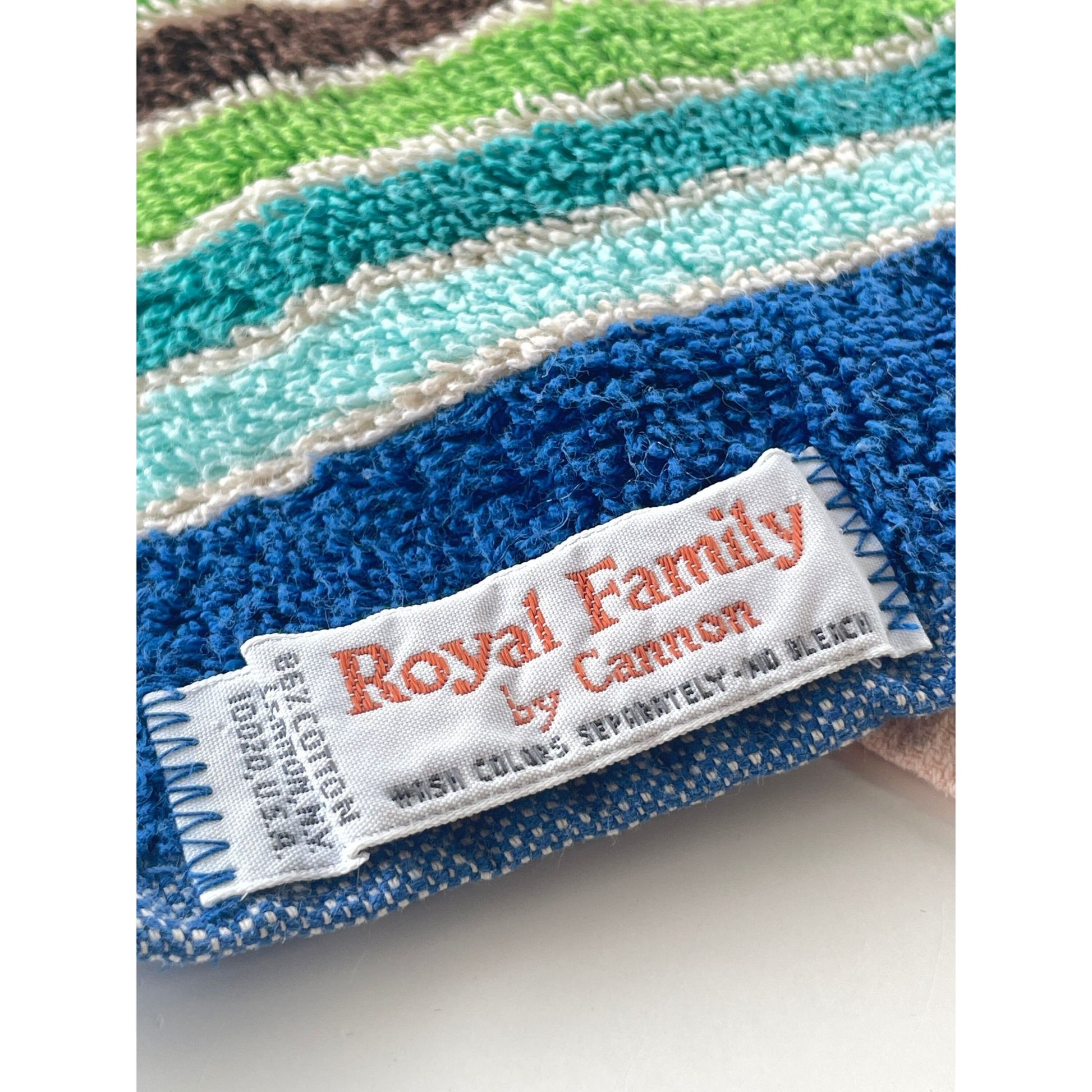 Vintage 80s hand towel, blue green tan stripes, Royal Family by Cannon