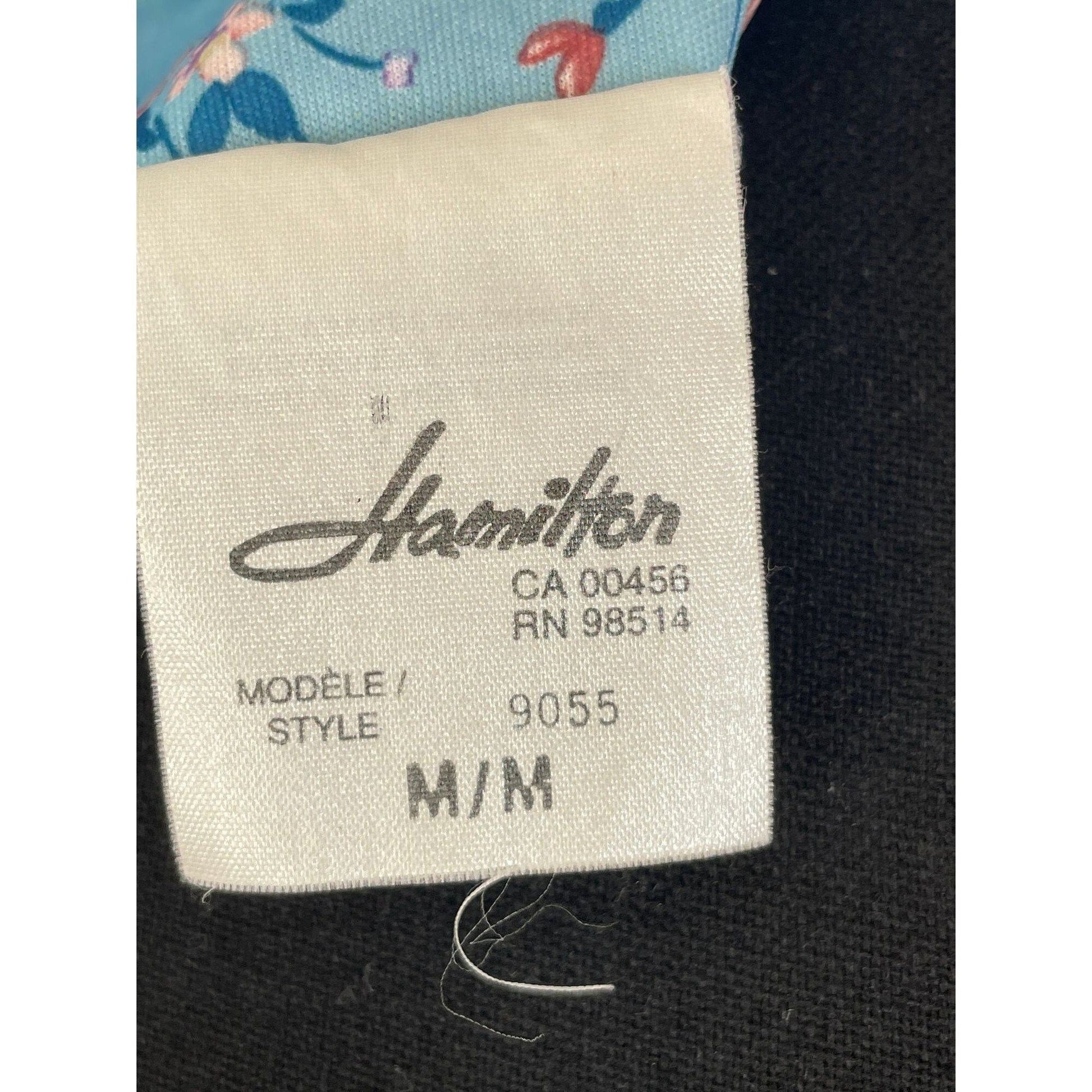 Knee length blue floral robe, made by Hamilton in Canada, this garment has delicate floral print, with short sleeves. It has a front half length zipper.